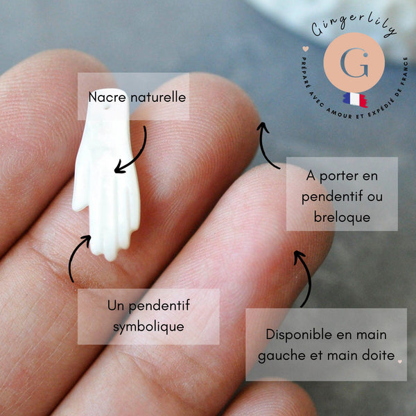 A natural white mother-of-pearl hand pendant , a pendant symbolizing luck and kindness.