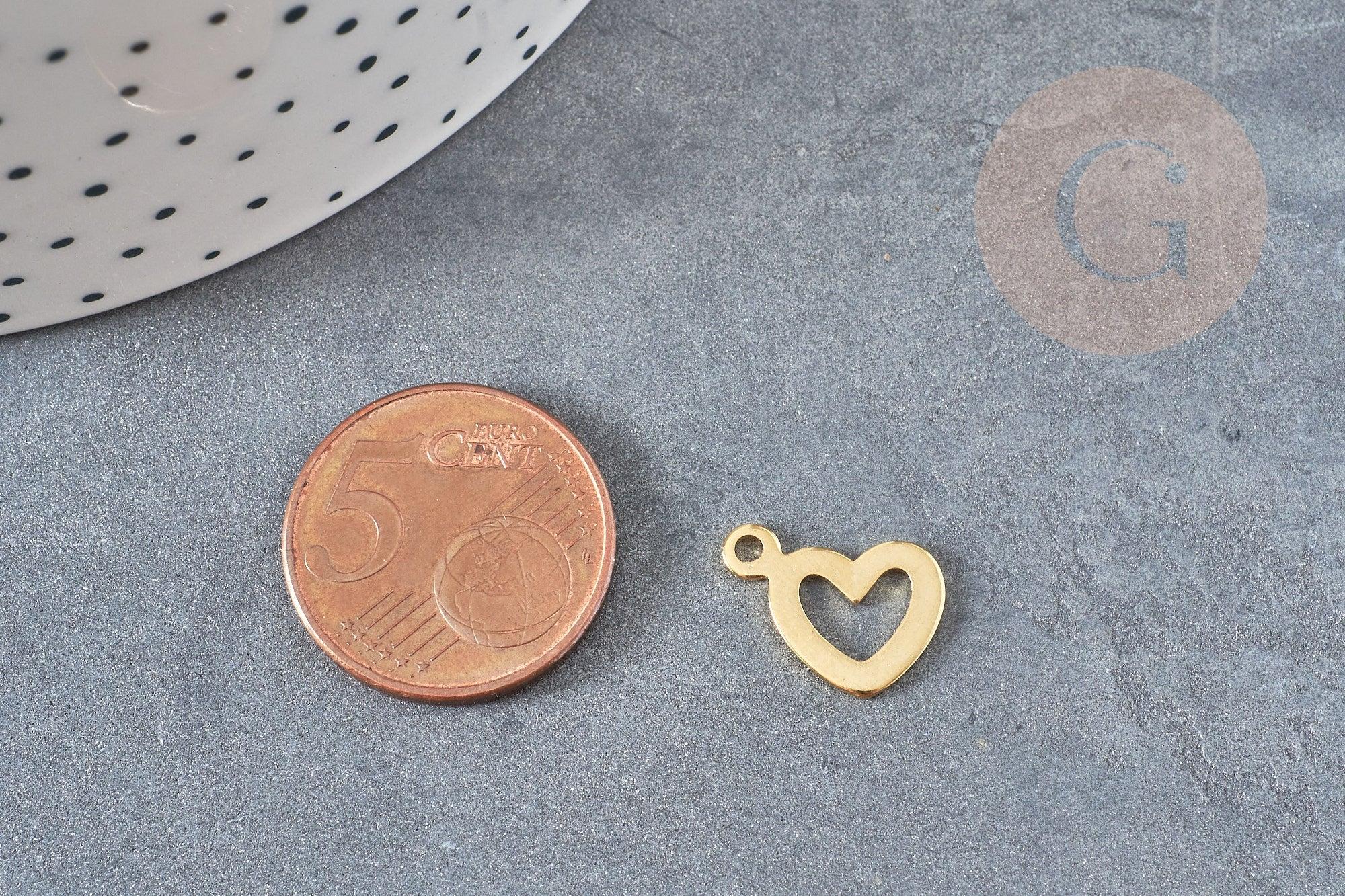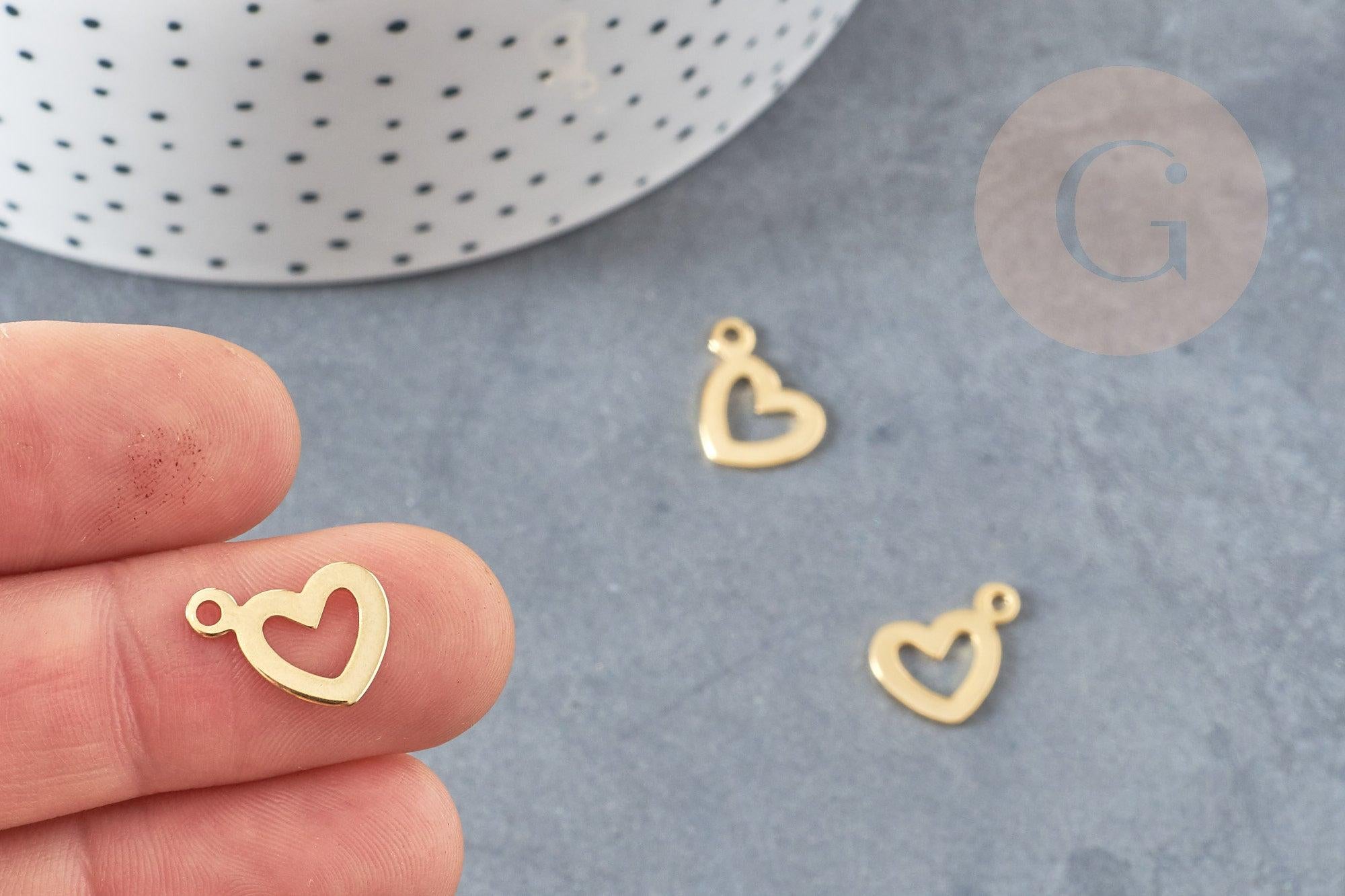 A pretty golden medal in the shape of a heart hollowed out with a small heart, to create pretty necklaces, bracelets and earrings