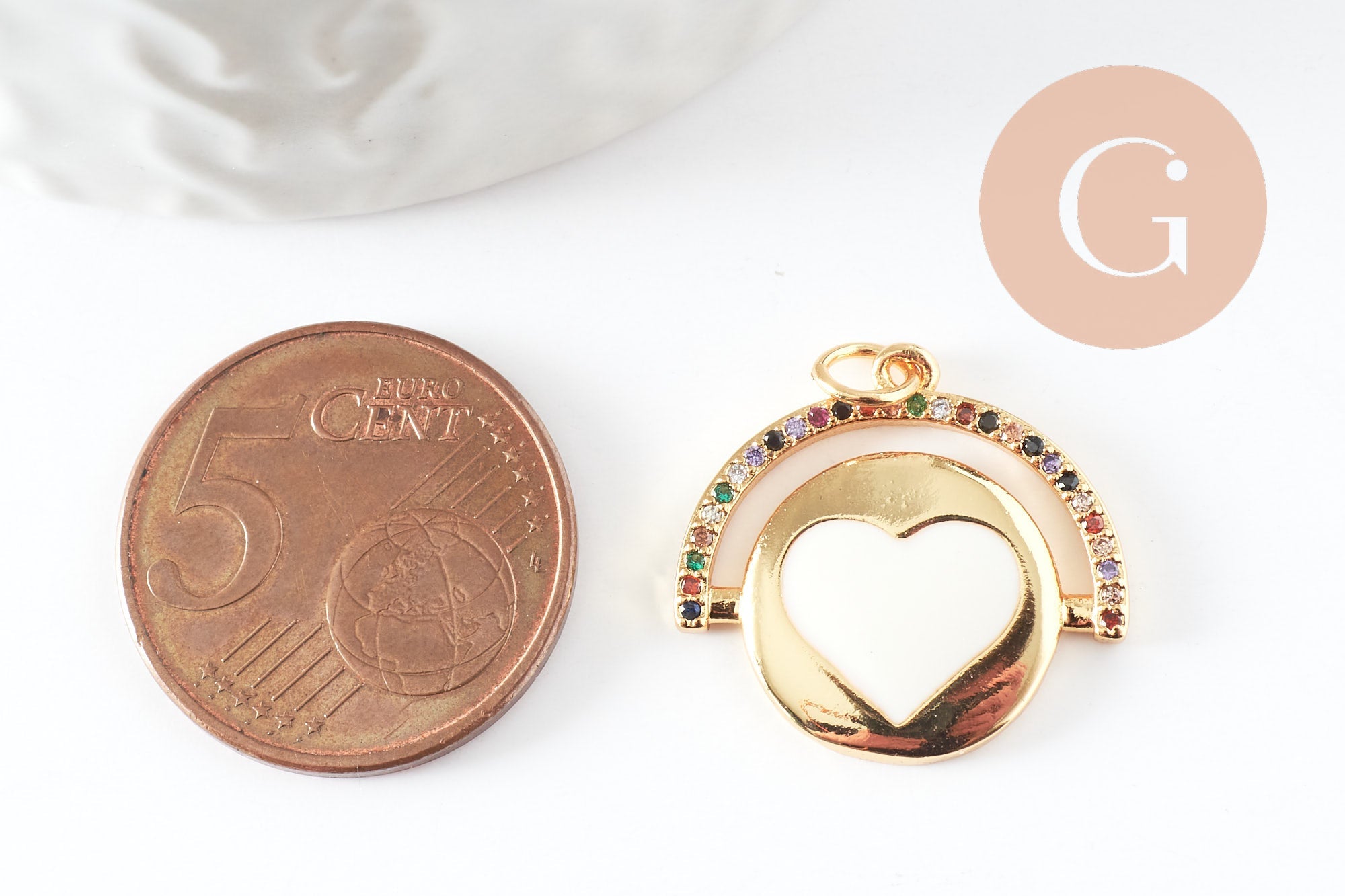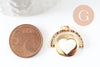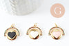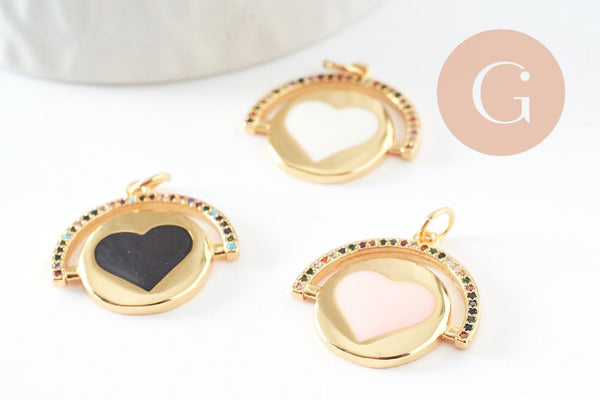 Round heart medallion pendant in golden brass enamel and zircon, nickel-free love brass pendant, 21mm, each