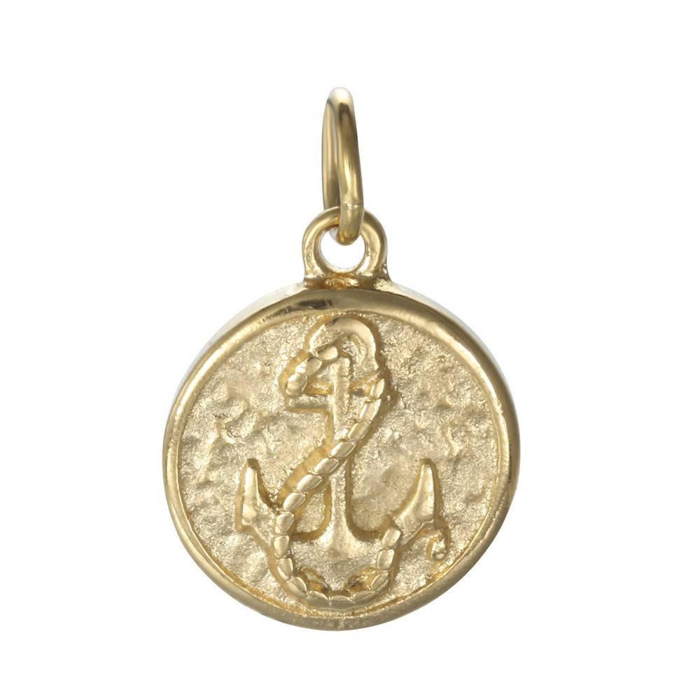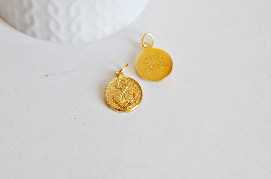 EP-Pendant round anchor medal gold-plated steel, gold-plated pendant, nickel-free, gold-plated brass, jewelry creation, gold medal, 2.2cm-G1900