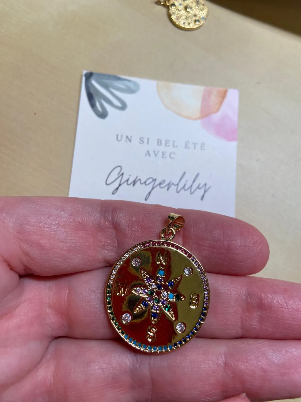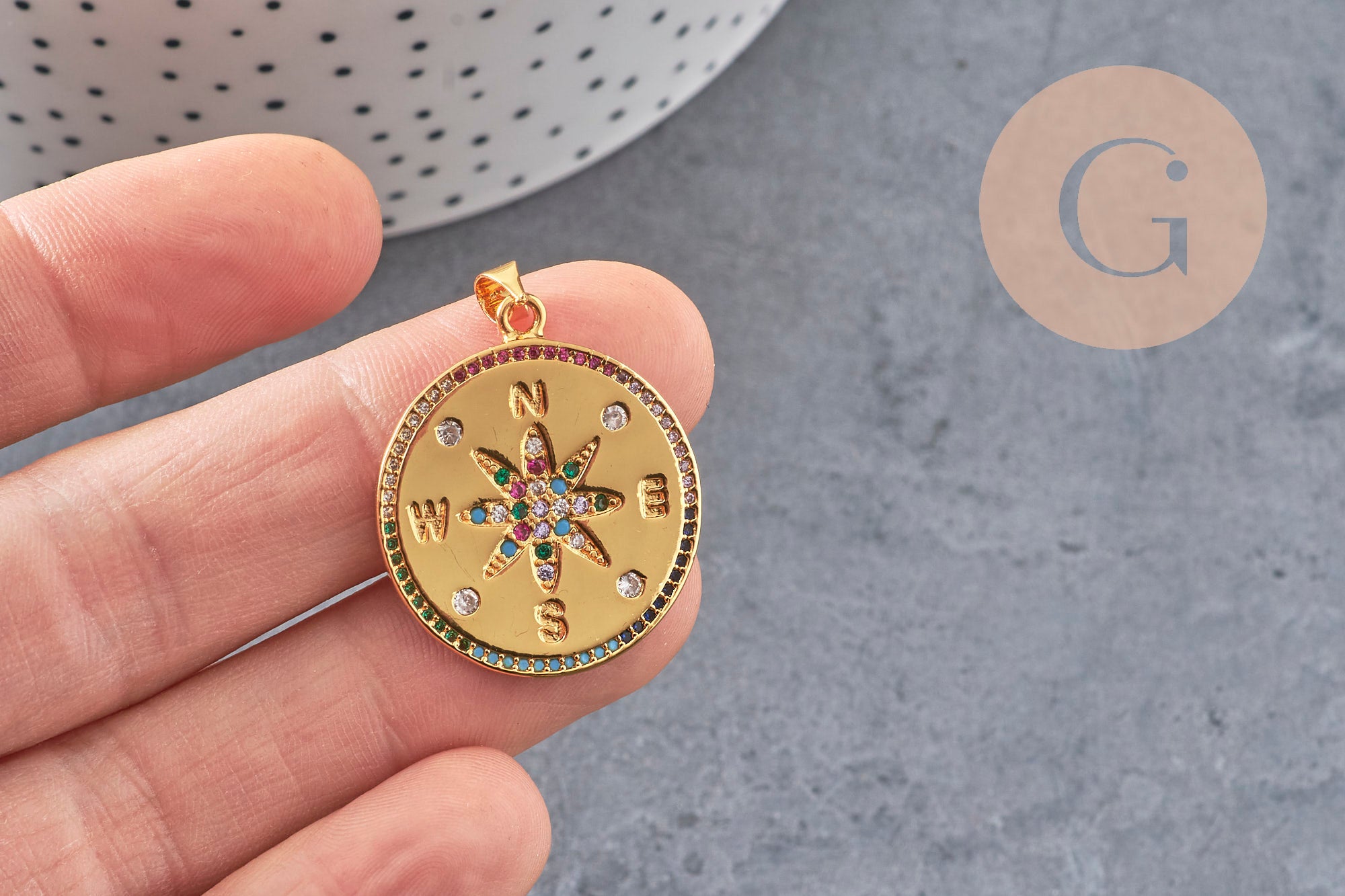 Elevate your creations with this round 18K gold-plated brass medallion , delicately decorated with sparkling zircons and a multicolored star at its center. This pendant symbolizes the compass , a guide and good luck charm, perfect for jewelry that is both elegant and spiritual .