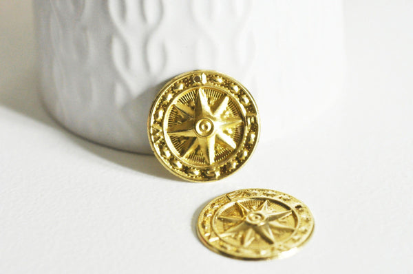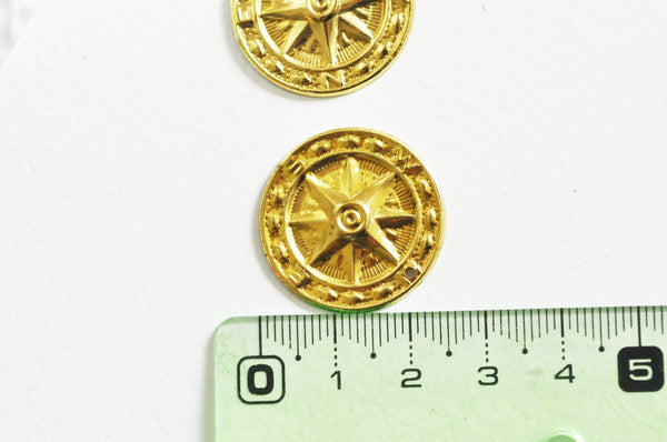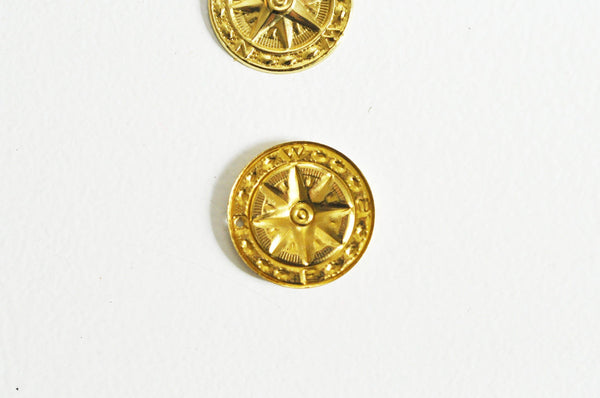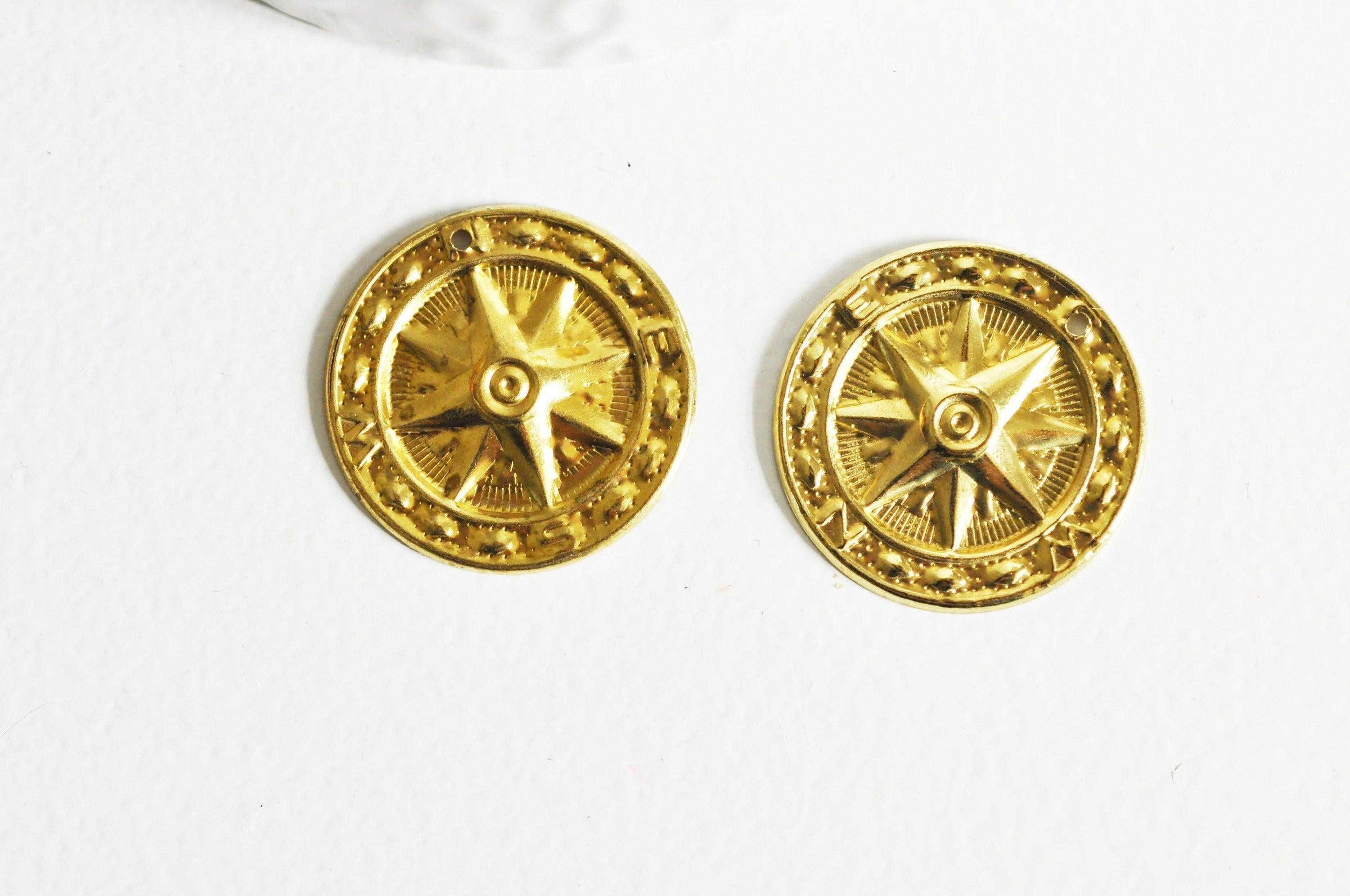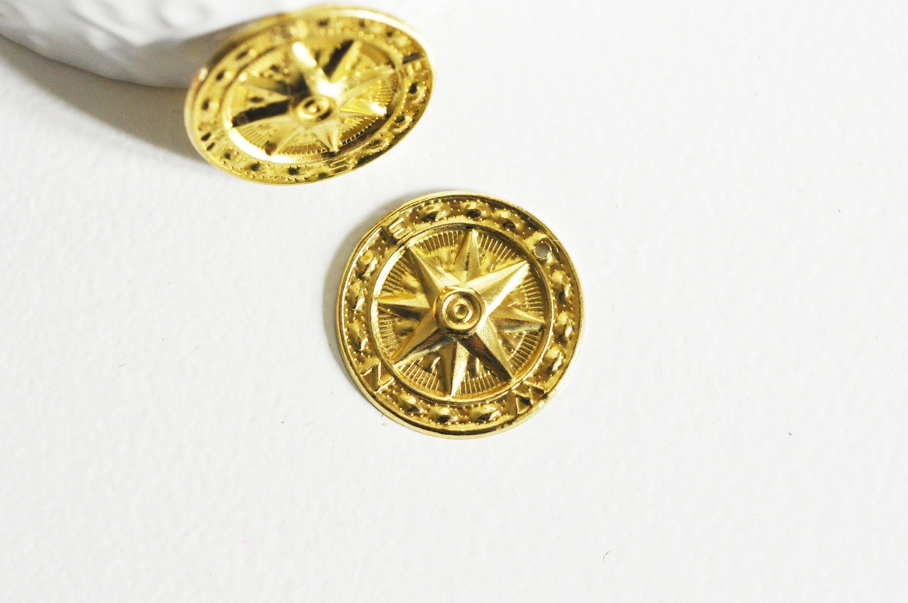Raw brass round sun medal pendant, a nickel-free gold-plated primer, a round gold-plated medal, 25mm, set of 2