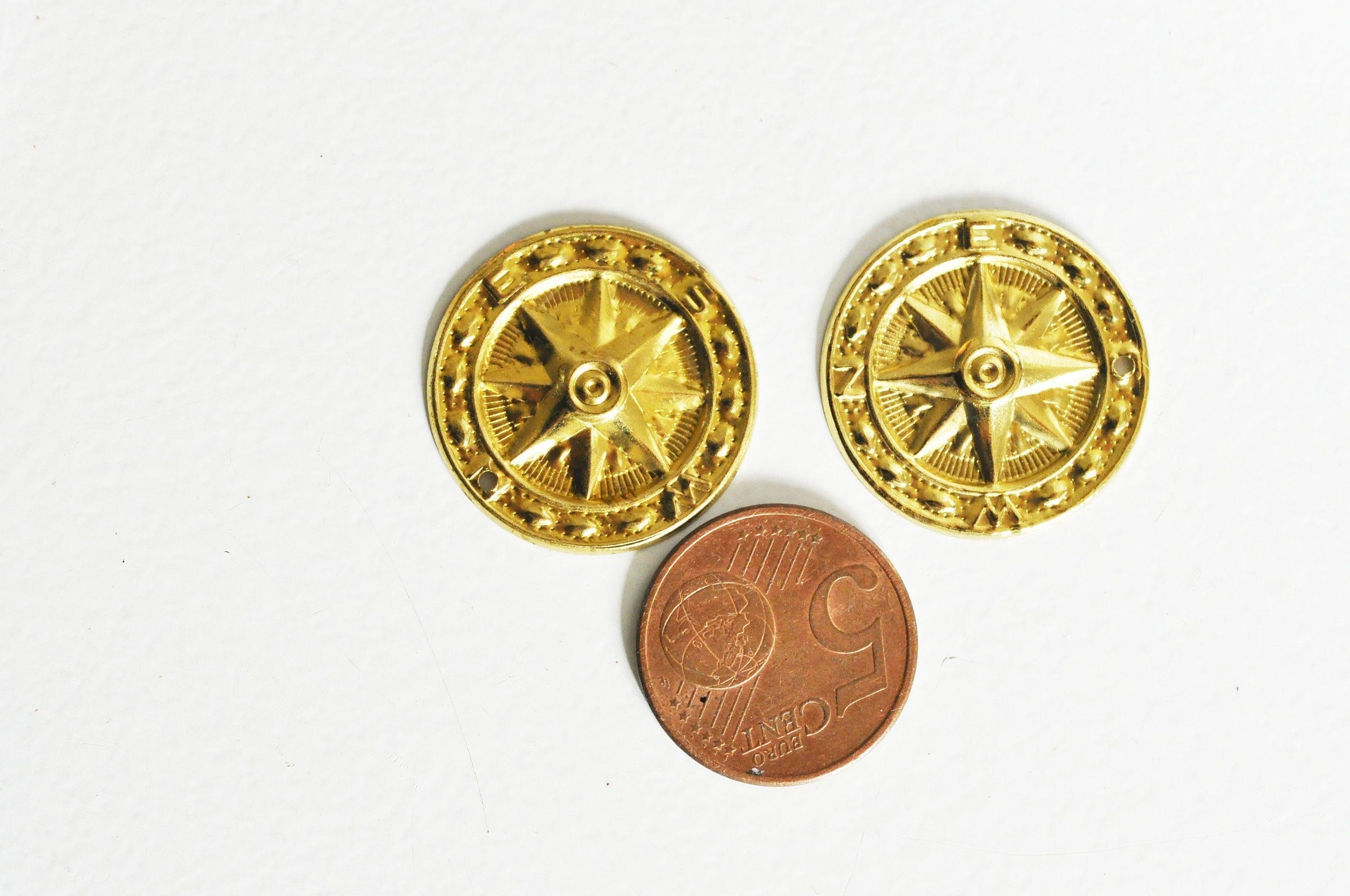 Pendentif médaille ronde soleil laiton brut, un apprêt doré sans nickel, une médaille ronde dorée,25mm,x 2,G3225