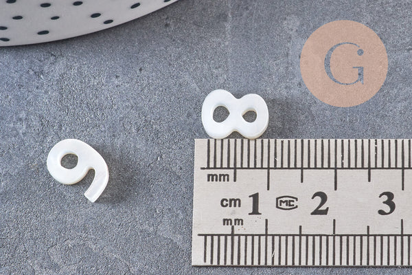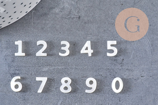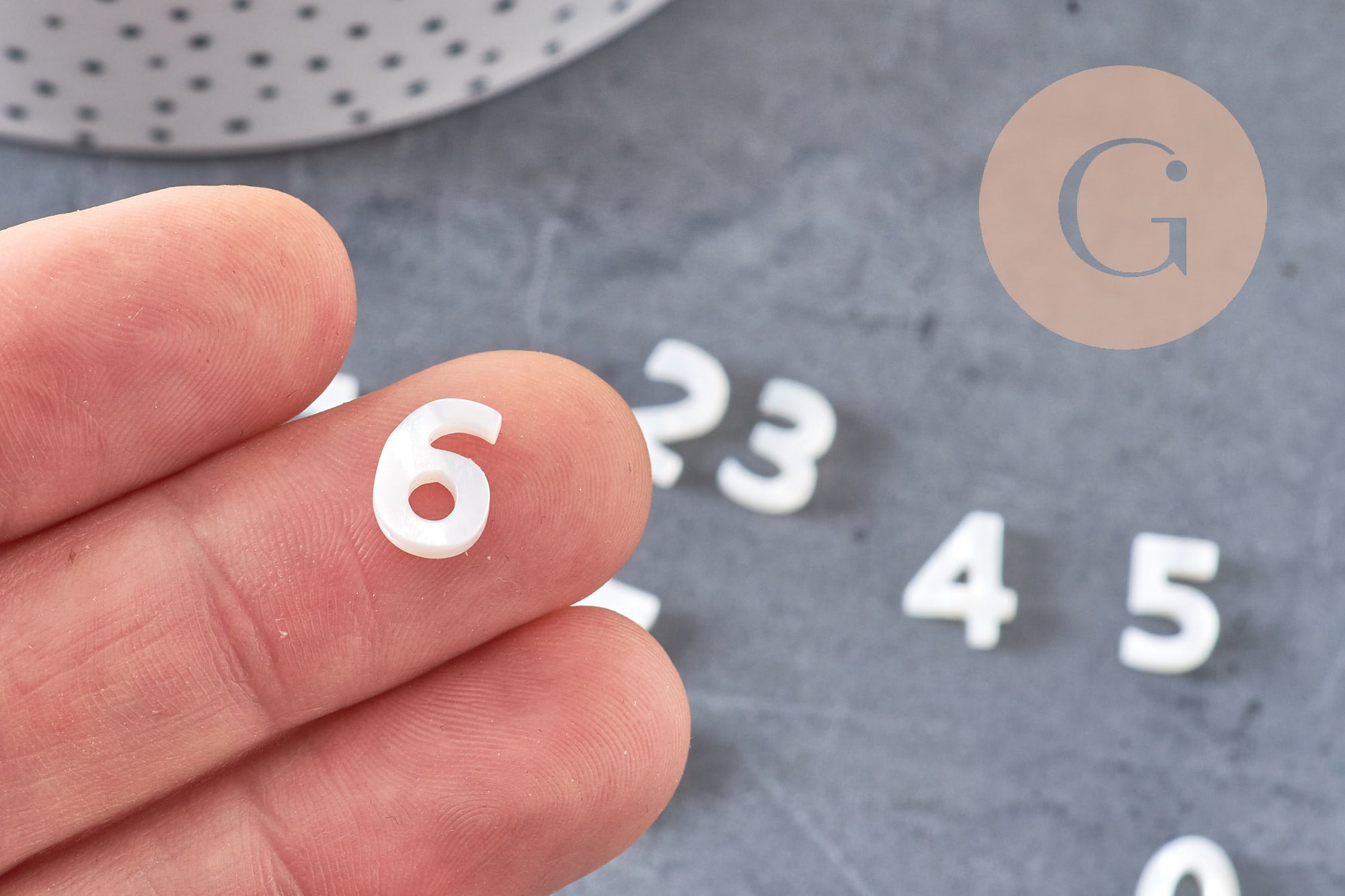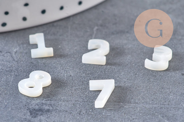 A pretty natural white mother-of-pearl number pendant, to wear as a necklace, earrings or bracelet with your lucky number. Why not create a necklace with your birthday or wedding year?