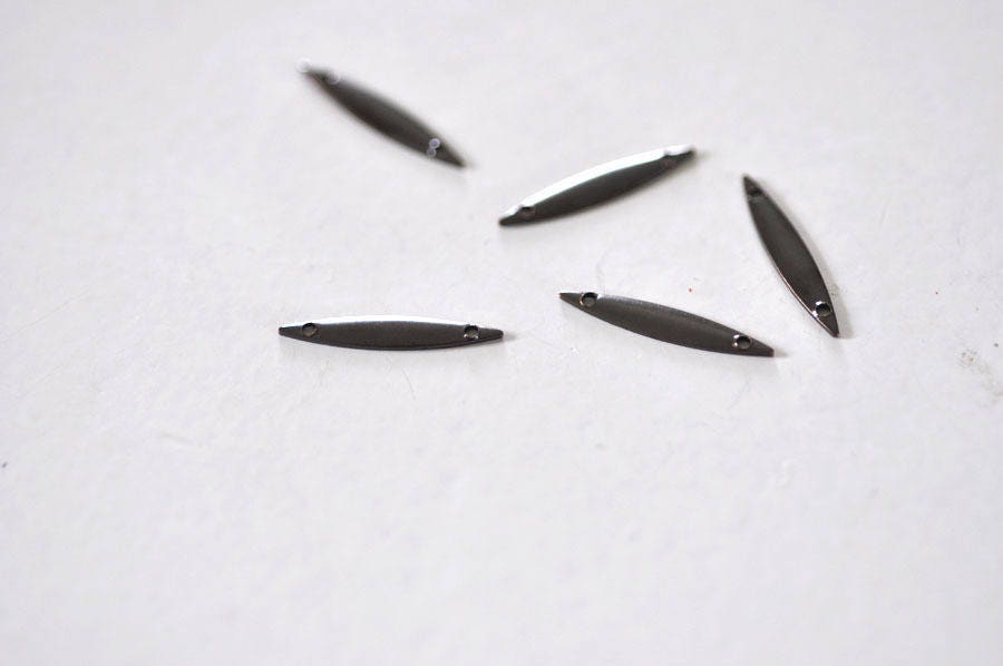Brass copper shuttle cabochons 2 holes, creative supply, brass charm, Nickel free, copper marquise, jewelry creation, 10 To make magnificent necklaces, earrings and bracelets, adopt these little patinated brass shuttles. Width:3.5mm length: 20mm Sold individually Please note: brass can sometimes...