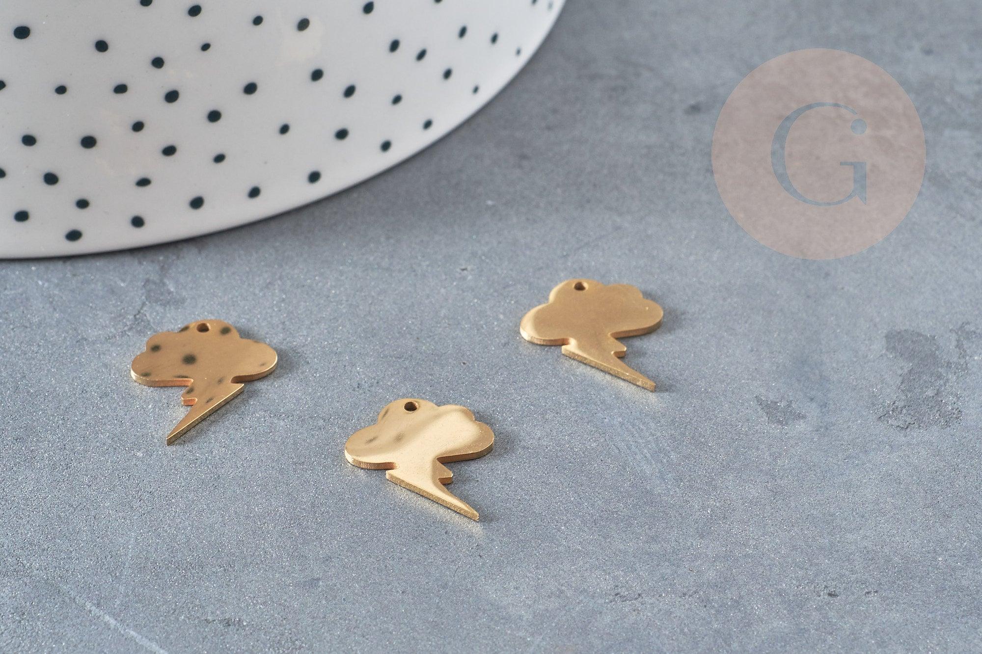 Stainless steel gold-plated lightning cloud pendant, gold-plated jewelry creation, 19mm, unit