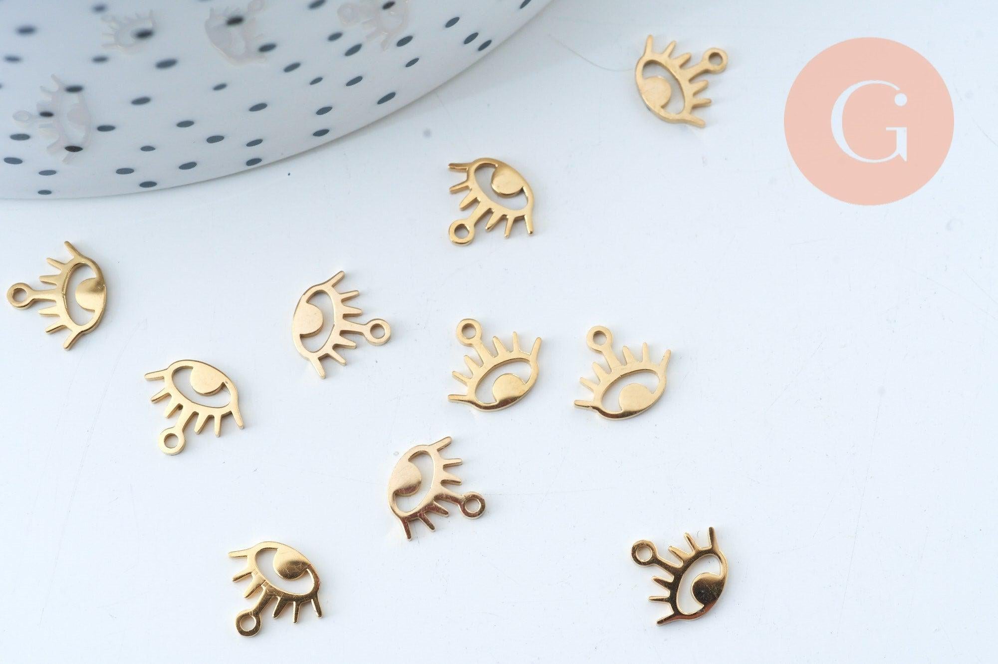 Use this golden sun eye medal pendant against the evil eye, gold and enameled with colored resin for your DIY jewelry creations.