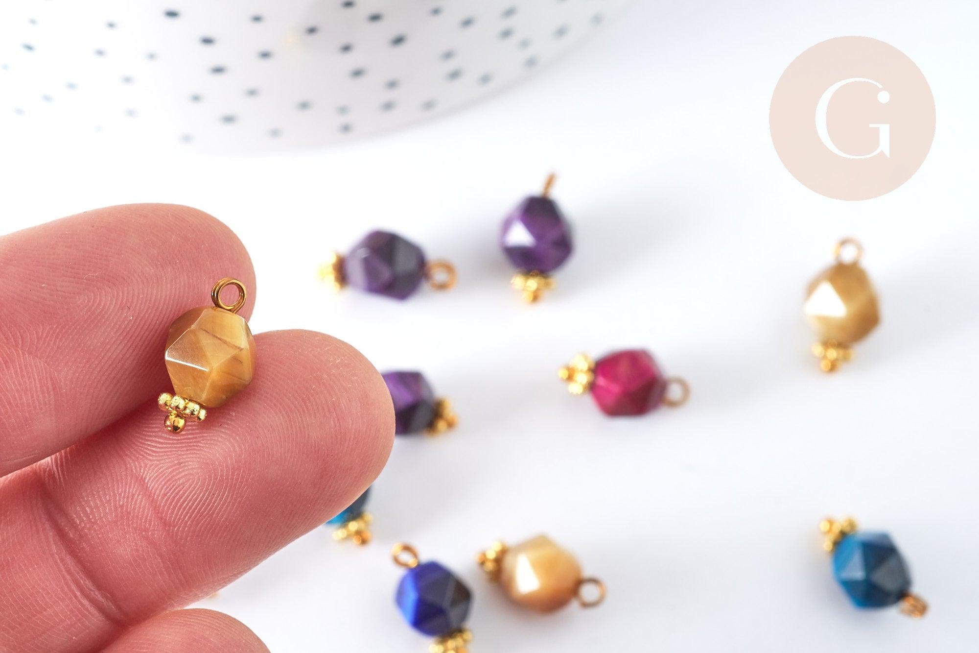 Adopt this pendant in natural tinted tiger's eye , fine stone. In addition, it is mounted on a loop in zamac golden . This will allow you to hang it wherever you want!