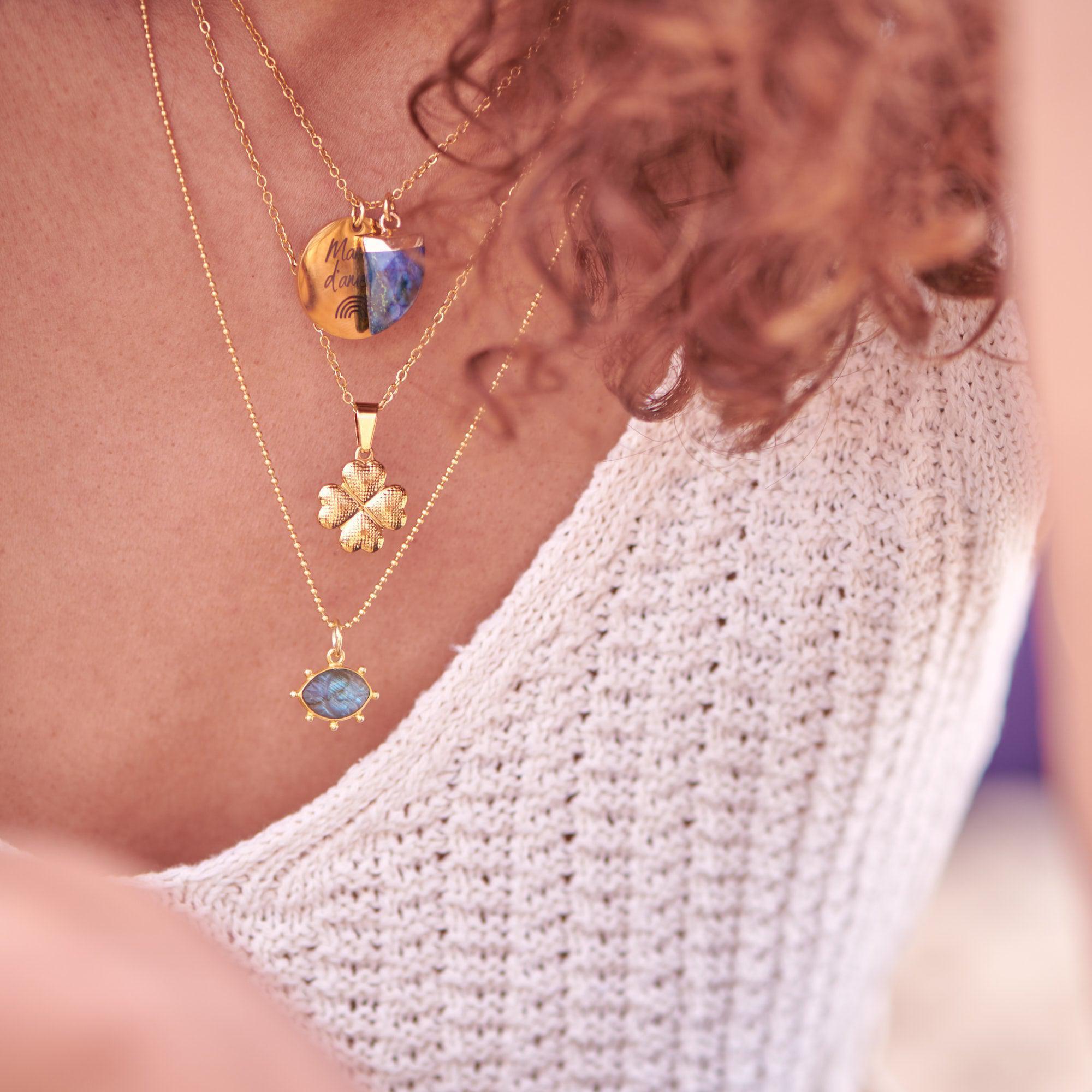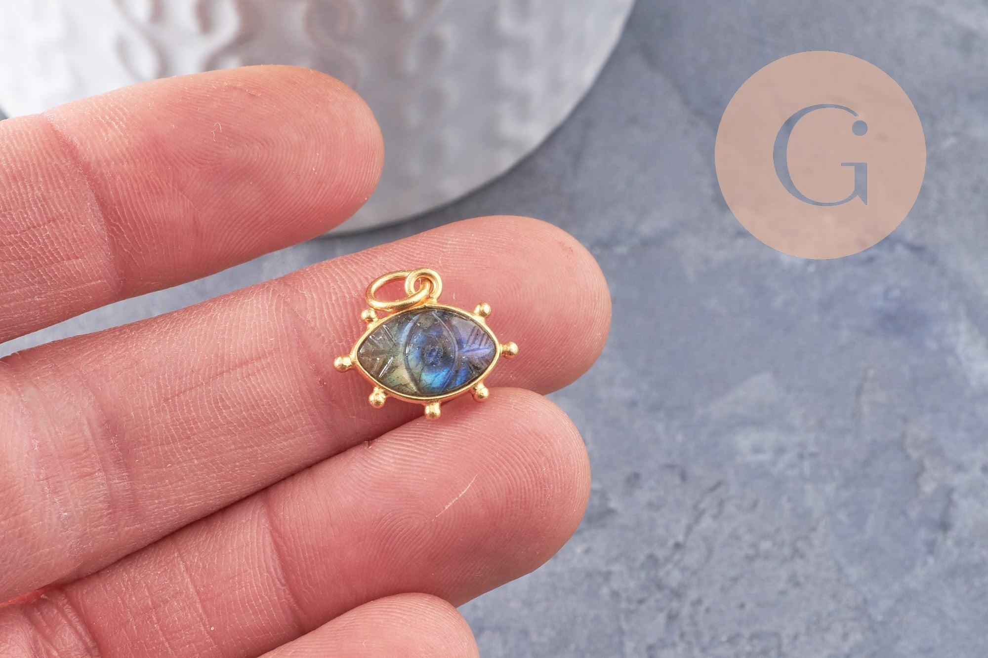 Fall for this natural labradorite eye pendant with its 18K gold-plated solid 925 silver support
