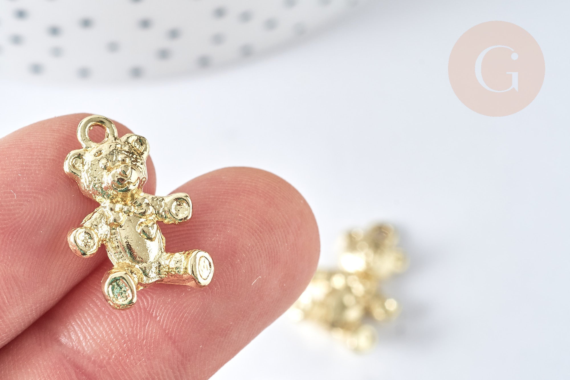 Relive your childhood with this light gold zamac bear pendant , with a soft, rounded design. Perfect for adding a touch of tenderness and whimsy to all your DIY jewelry creations.