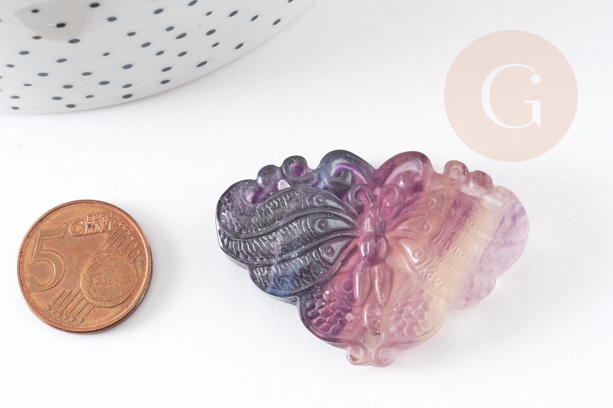 Pendentif papillon fluorite, pendentif en pierre naturelle, fluorite naturel 48mm, x1 (G3624)