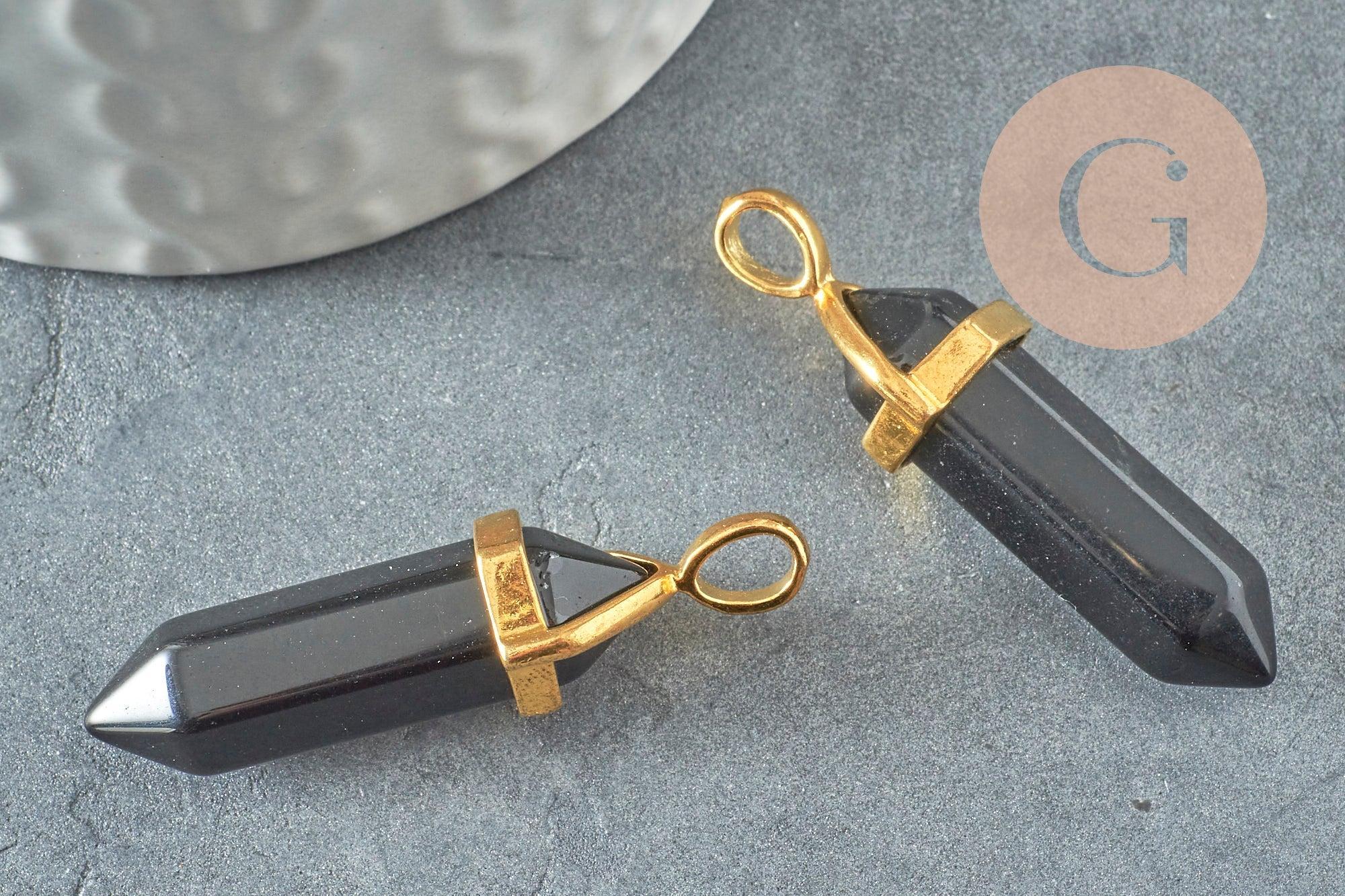 With this black natural agate point pendant and its support in golden , you will be able to create many DIY costume jewelry .
