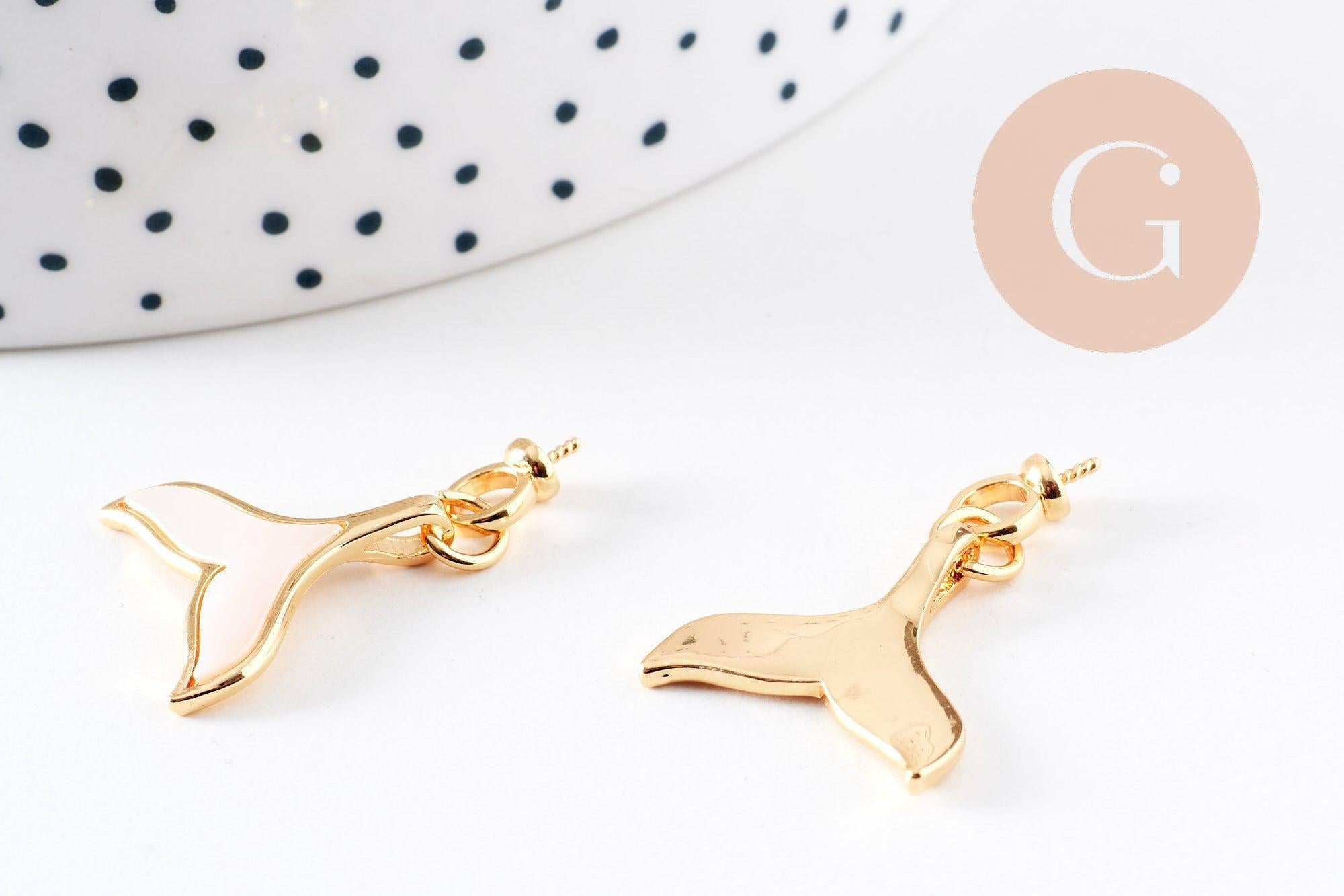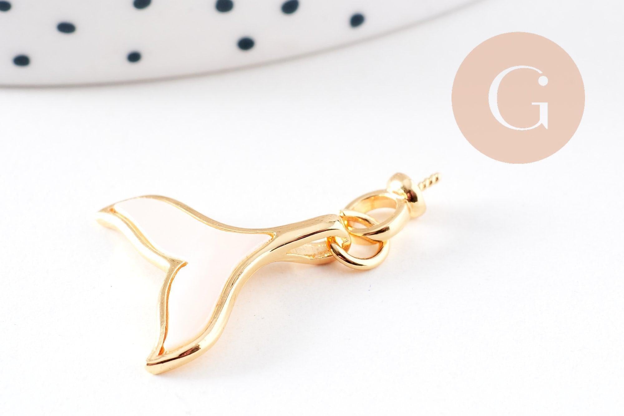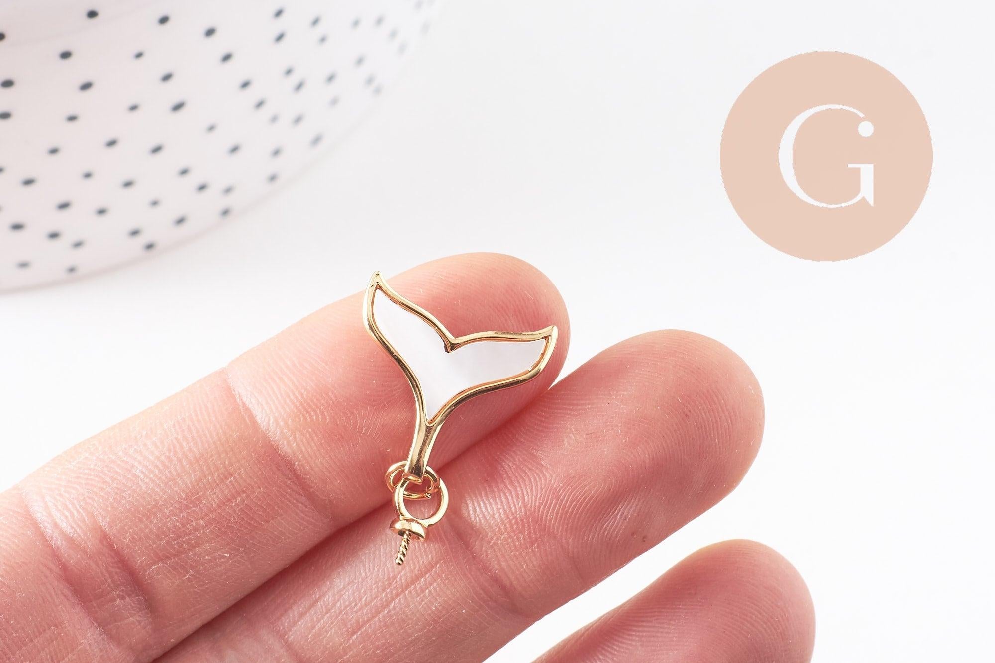 Add an elegant nautical touch to your designs with this fishtail pendant , crafted from pearly white acrylic and mounted on an 18K gold-plated brass base.