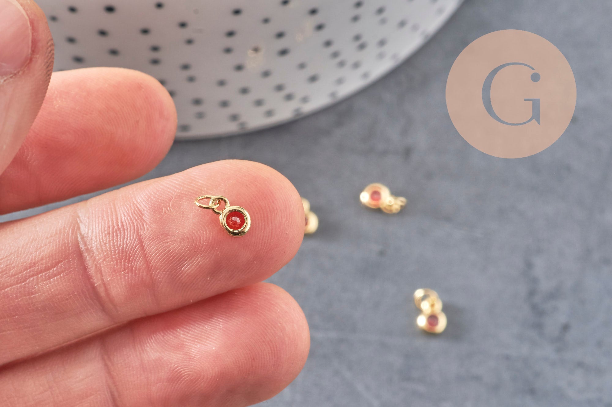 An adorable mini gold charm with a red zircon. You can create magnificent earrings and necklaces using this very trendy connector pendant.