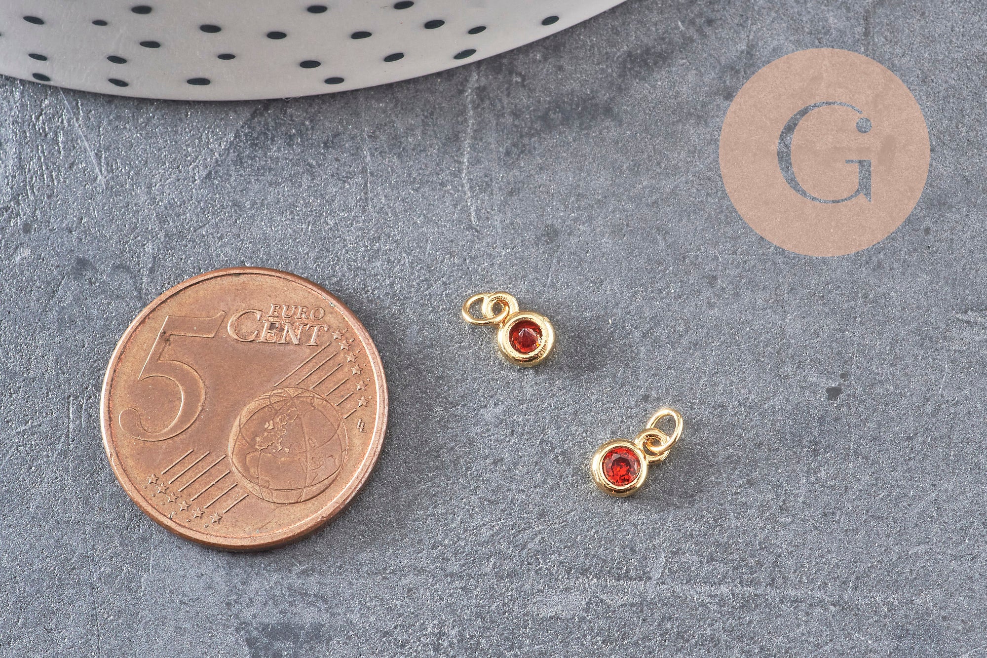 Round gold pendant 24 carat red zircon, crystal pendant, gold crystal pendant, jewelry creation, 6.5mm, 5