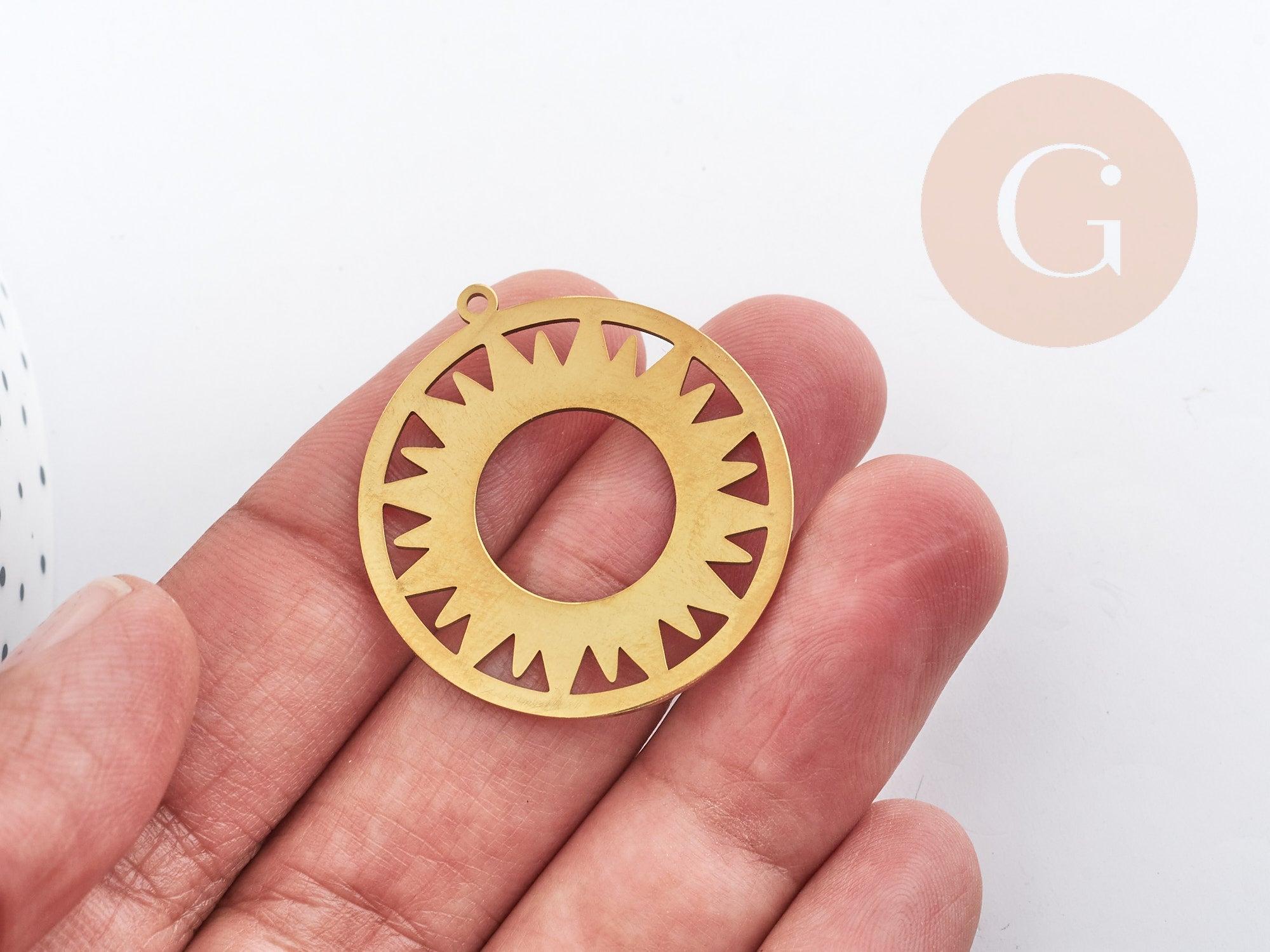 A magnificent sun pendant in gold-plated stainless steel , in the shape of a round medal, to use in all your earring and necklace creations.