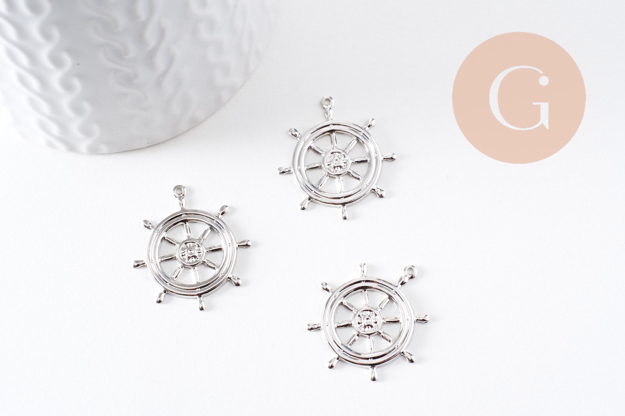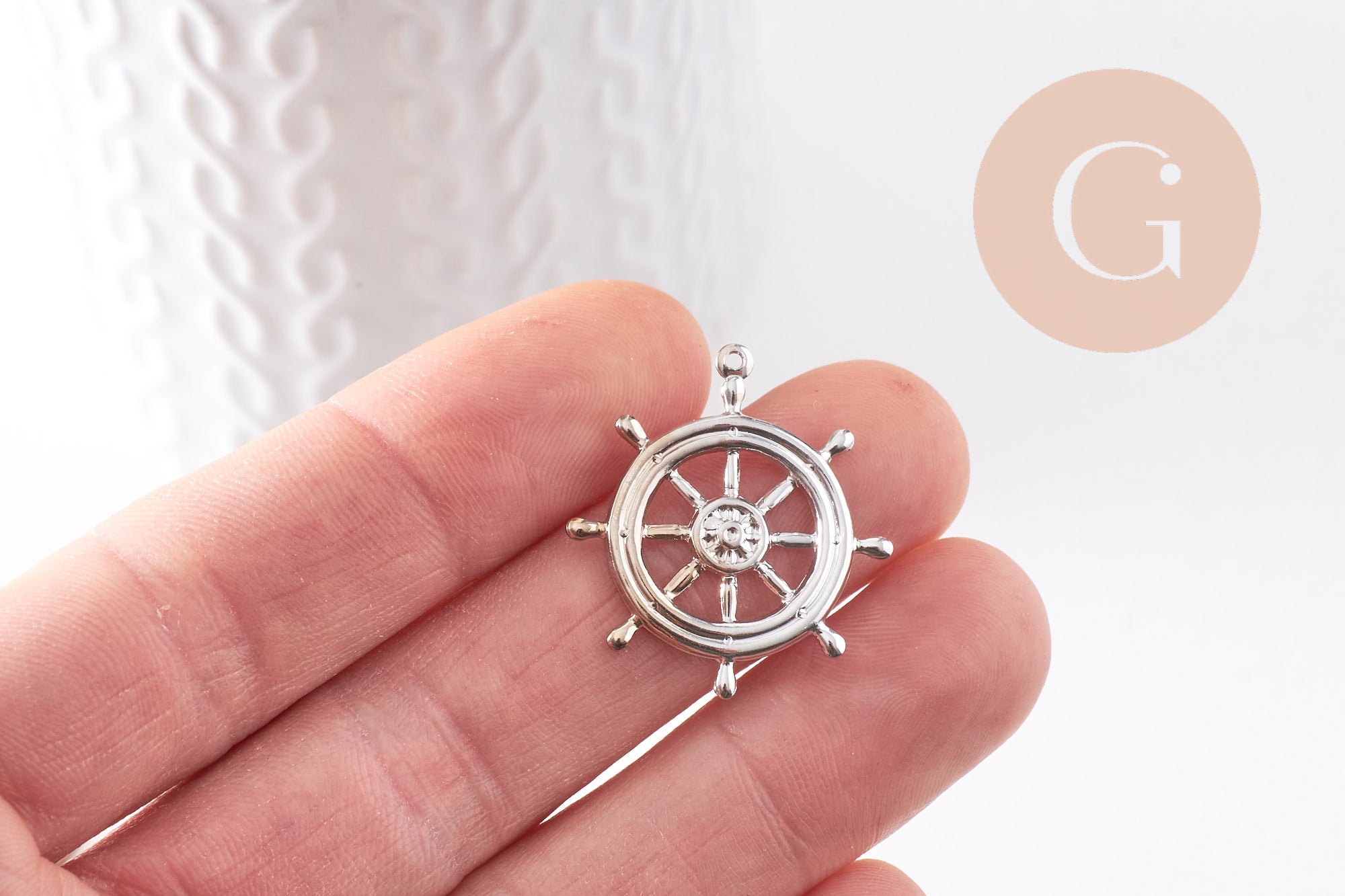 A pretty boat wheel pendant in silver metal, ideal for creating a necklace on a nautical theme, the sea and boats