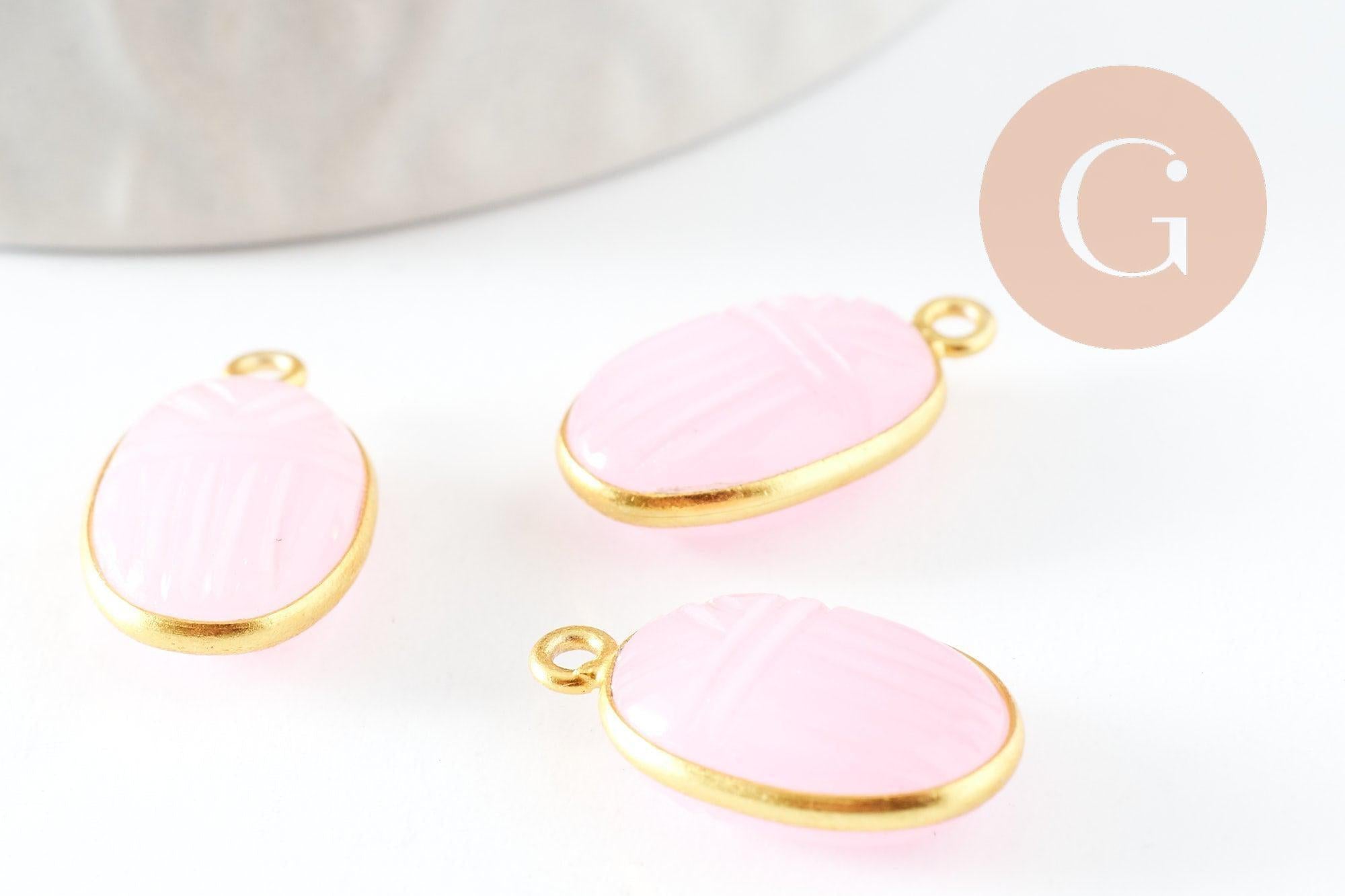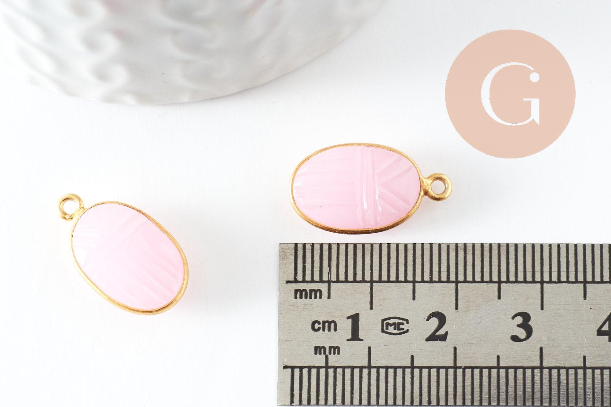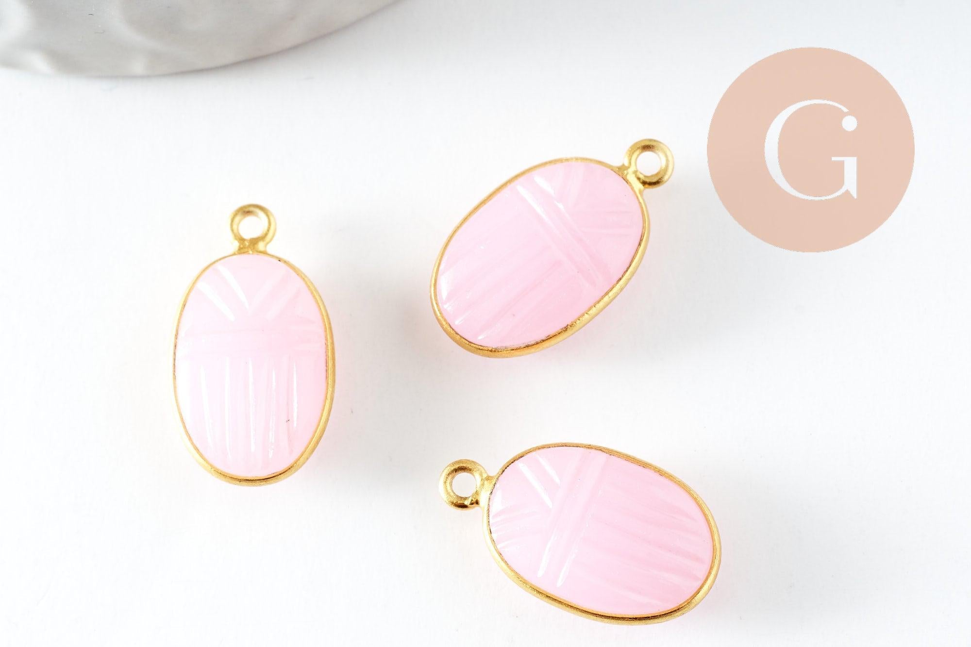 Pendentif scarabée calcedoine rose naturelle argent 925 doré 18K 20mm, x1 (G9440)