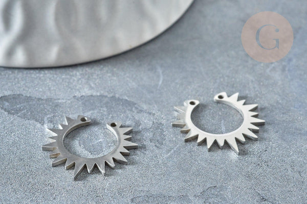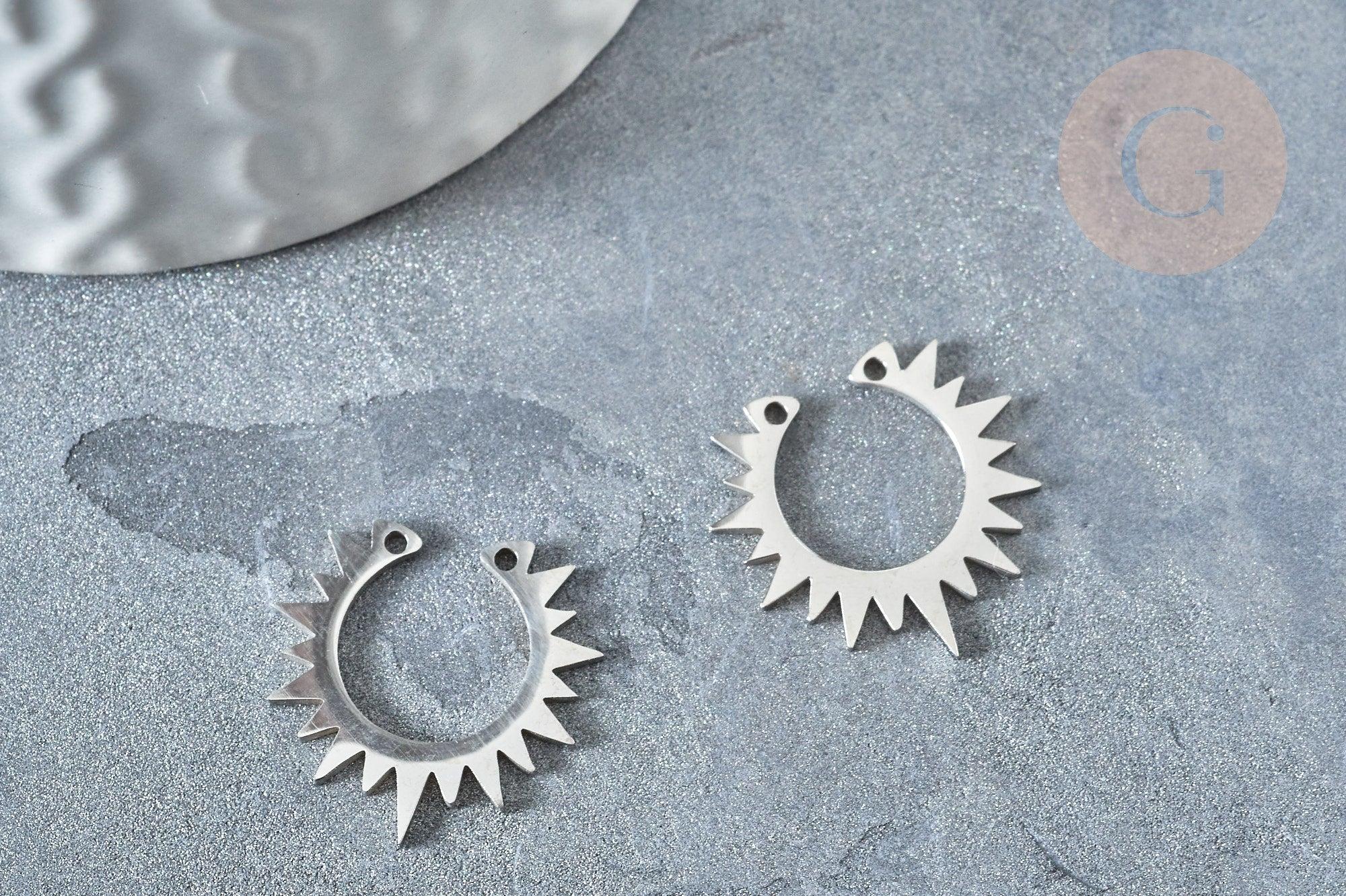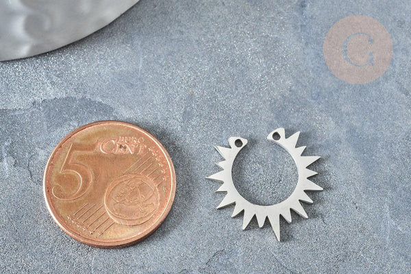 Platinum stainless steel sun pendant 19.5mm, silver stainless steel jewelry creation, x1 G7606