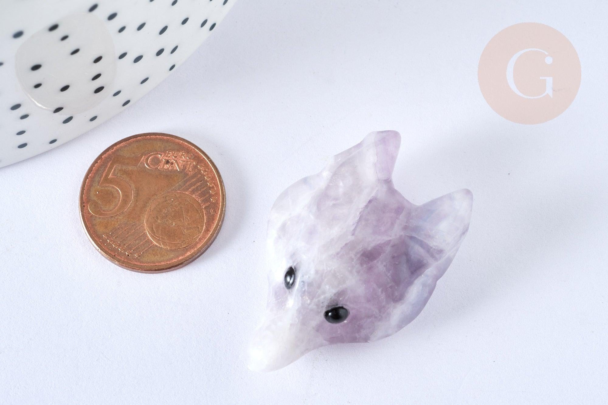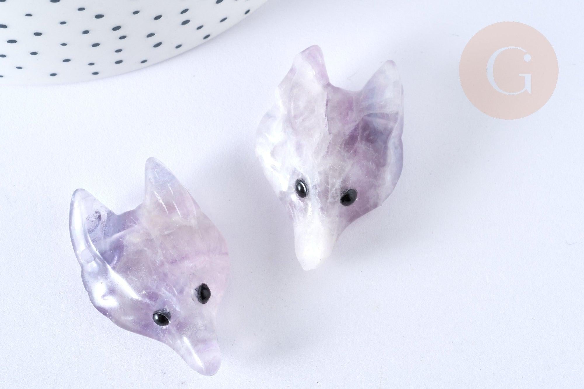 Pendentif tête de loup fluorite 37-42 mm, création bijou pierre naturelle, x1 (G7182)