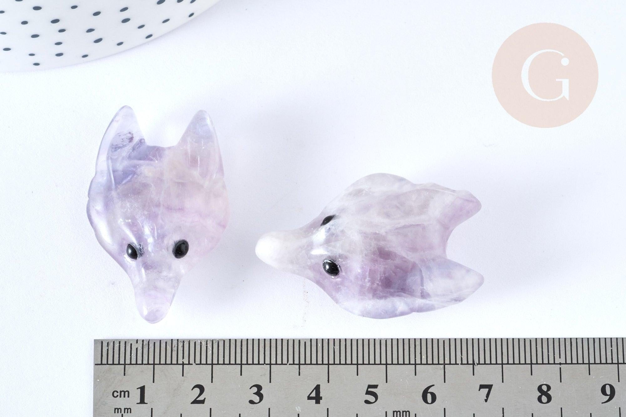 Fluorite wolf head pendant 37-42 mm, natural stone jewelry creation, x1 (G7182)