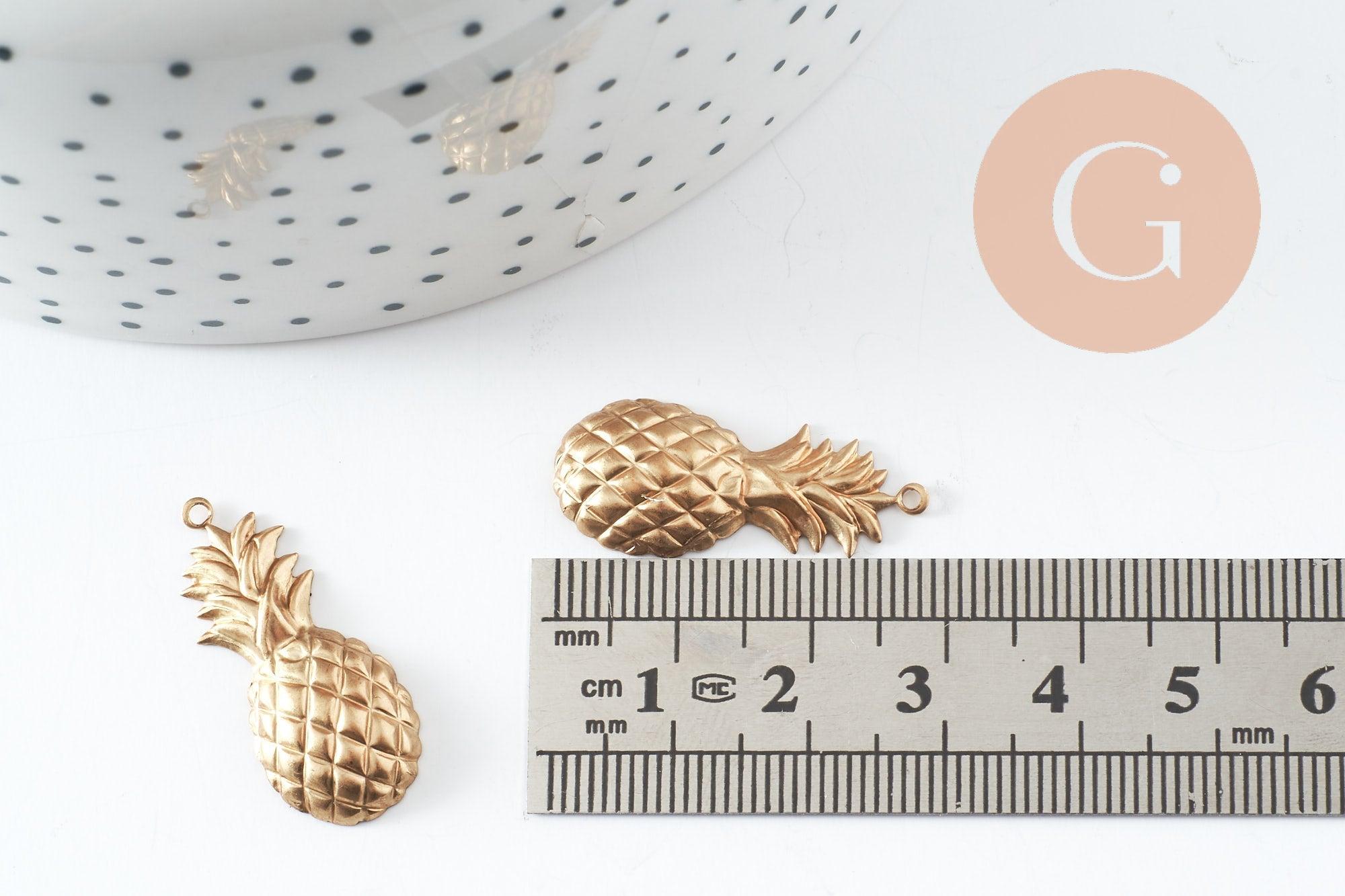 Raw brass Pineapple pendants, creative supplies, golden pendant, jewelry creation, tropical jewelry, nickel-free, tropical, set of 5, 2.9cm