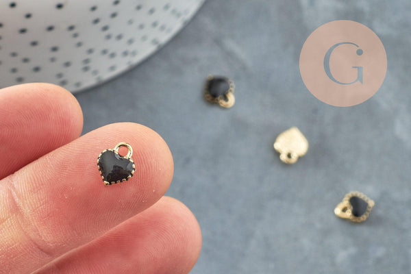 Golden black enamel heart pendants, heart pendant, creative supplies, gold metal alloy, love pendant, jewelry creation, 8mm, set of 10