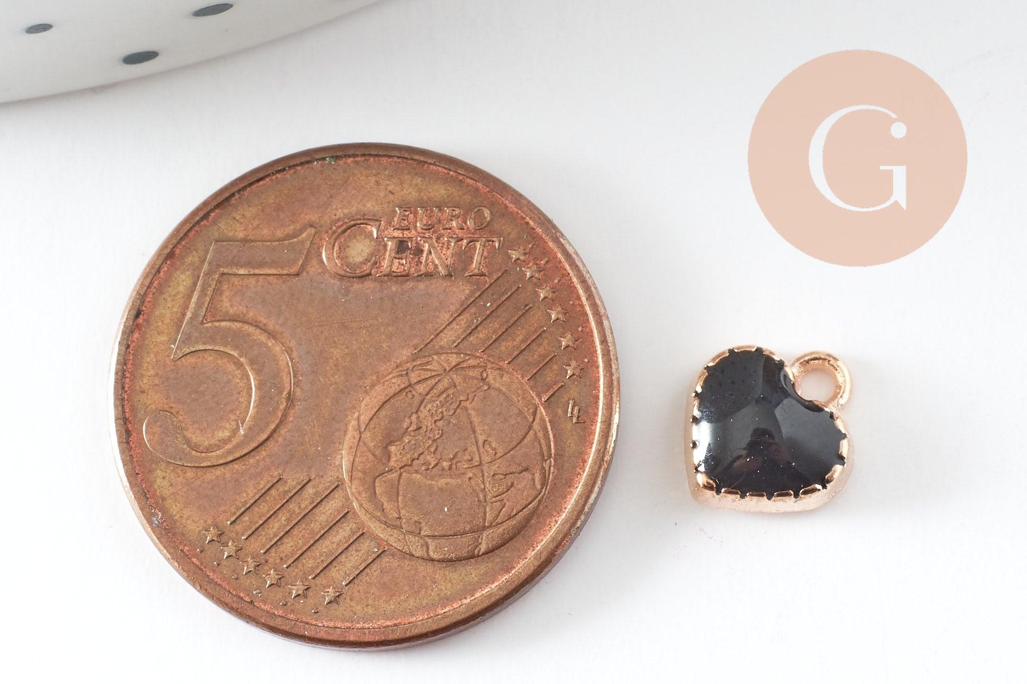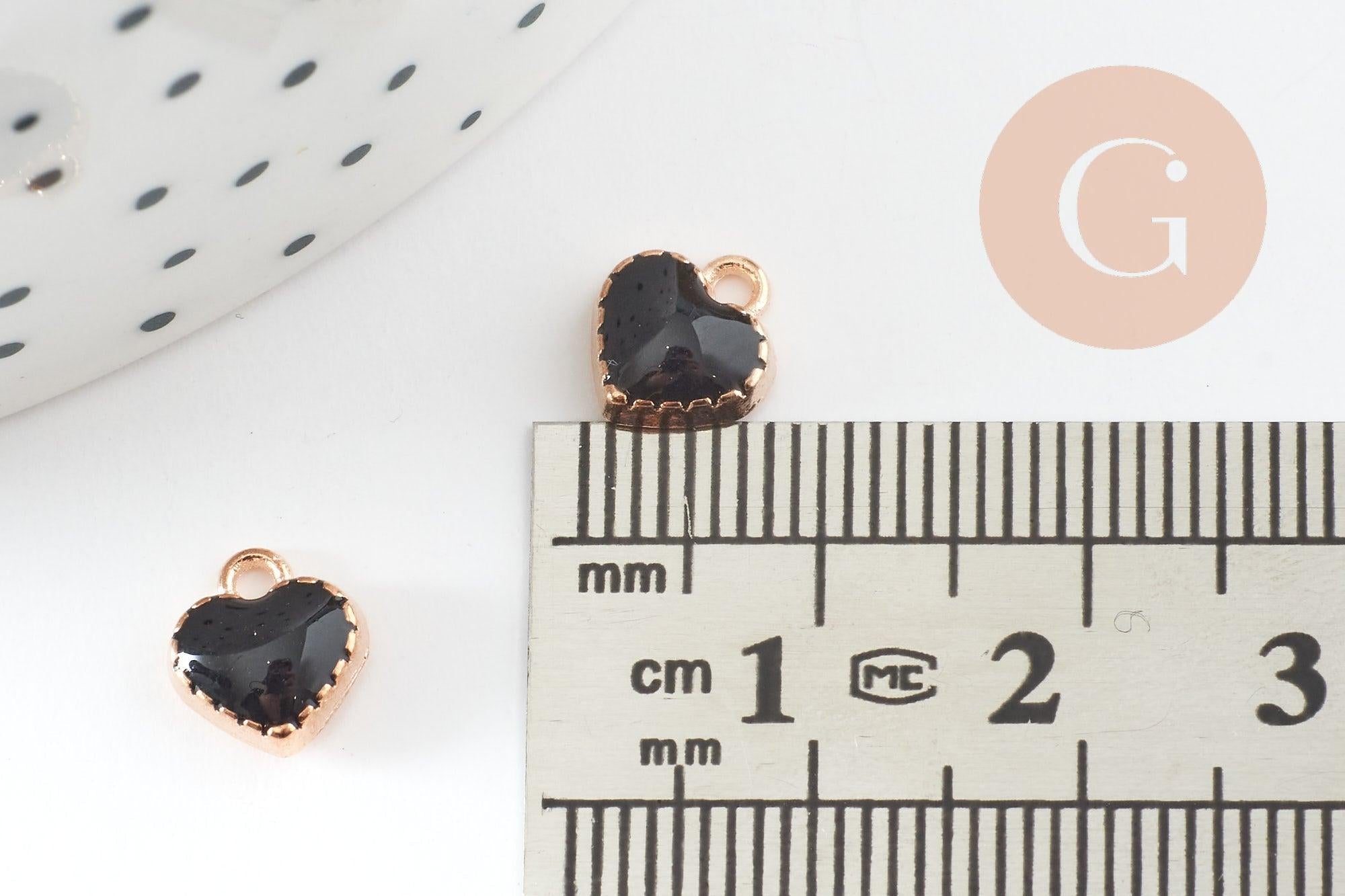 Pink gold black enamel heart pendants, heart pendant, creative supplies, pink gold metal alloy, love pendant, jewelry creation, 8mm, set of 10