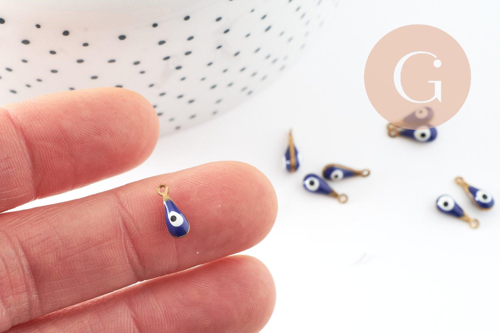 Golden pendants Dark blue enamel flower, evil eye, creative supplies, golden brass, lucky pendant, jewelry creation, 9mm, set of 10
