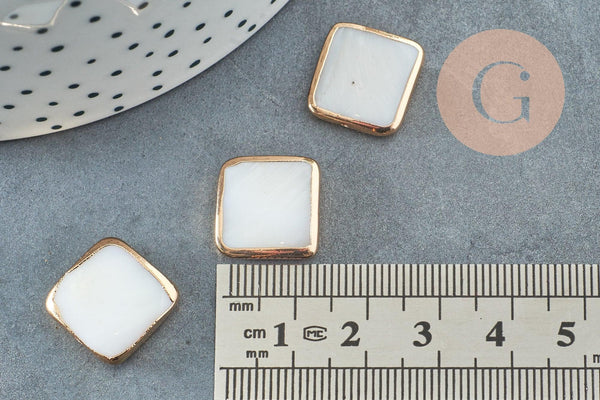 Add a natural and luminous touch to your creations with these square white mother-of-pearl beads mounted on a gold-plated base. Their elegant shape and refined finish make them ideal for delicate and sophisticated jewelry.