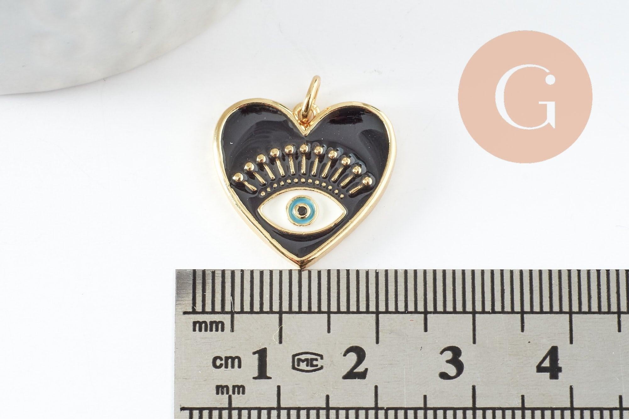 Adopt this heart pendant in 18K gold-plated brass and black enamel , decorated with a protective eye, to create your little love jewels: ideal for creating earrings and necklaces.
