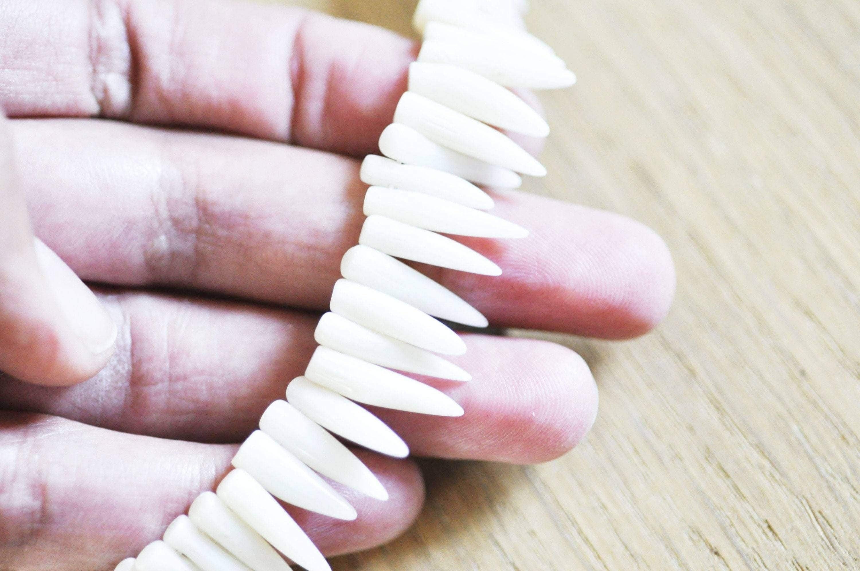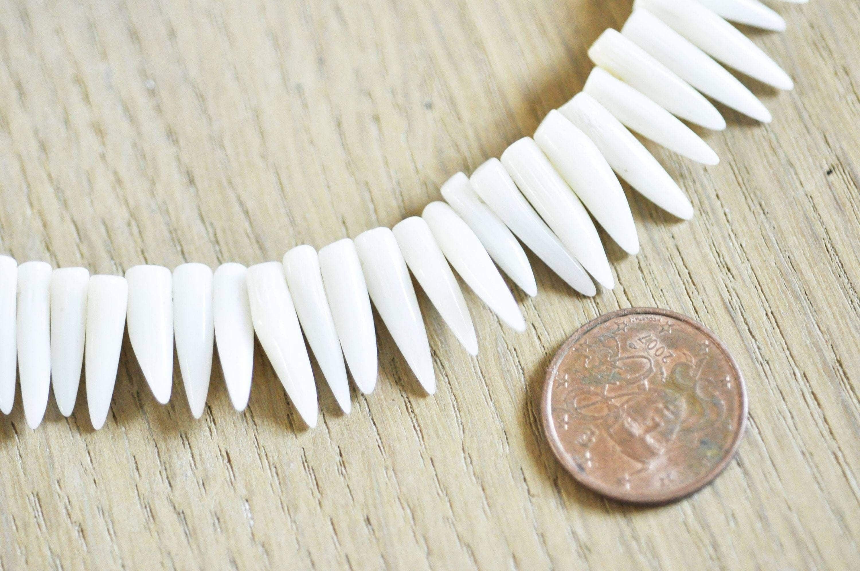 Natural white dyed coral beads on a 40 cm (17") tooth-shaped wire
