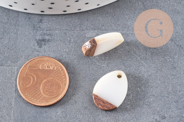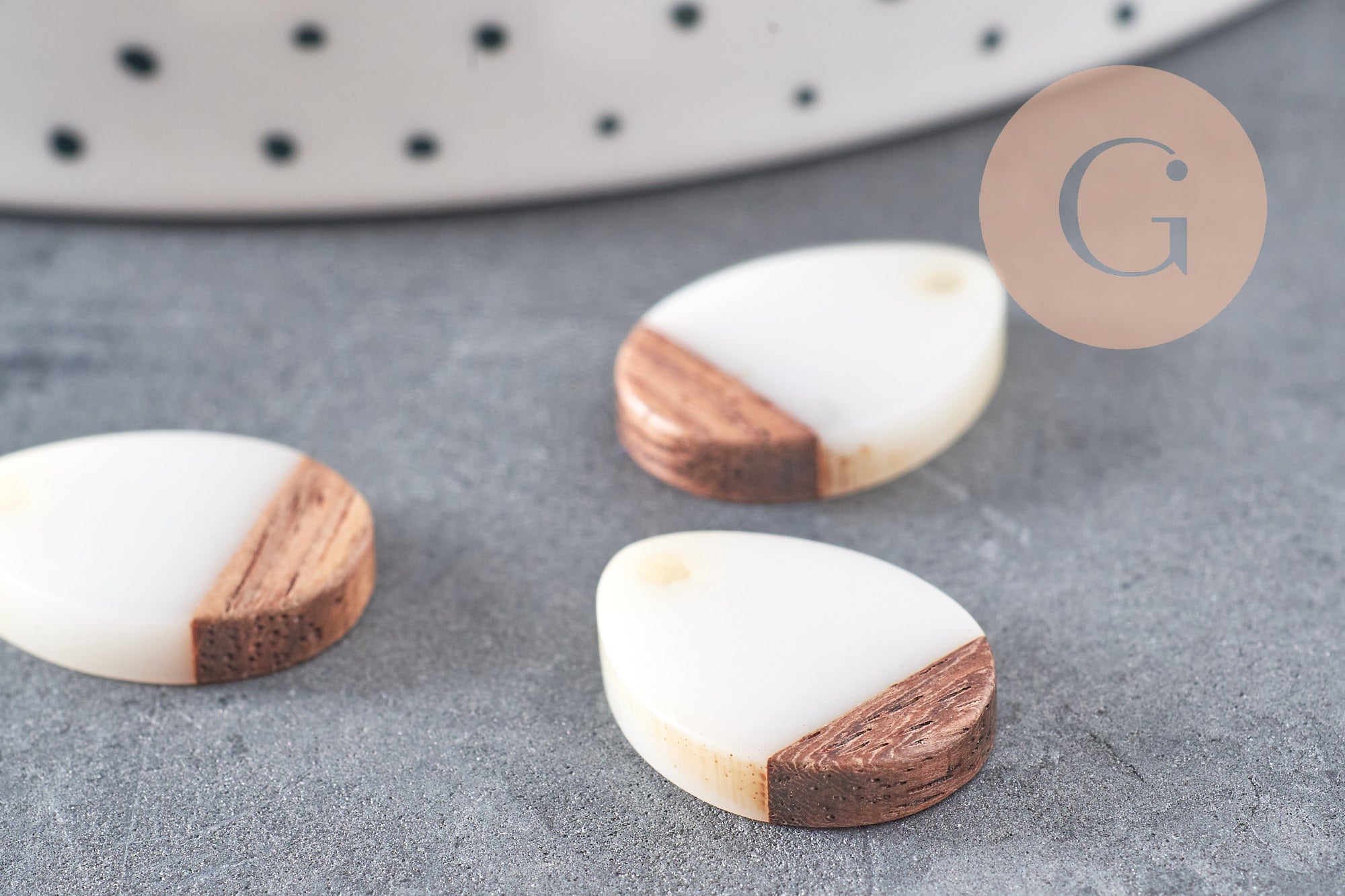 These drop-shaped pendants combine the warmth of natural wood with the purity of white resin . An elegant choice for your jewelry creations in a clean and modern style.