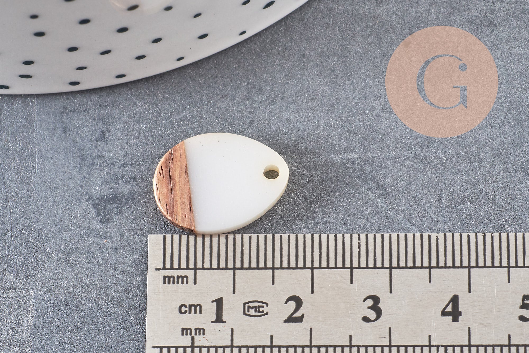 Pendentif goutte bois résine blanche 17.5mm, x5 (G1803)