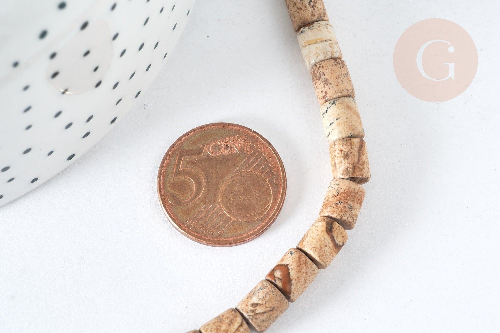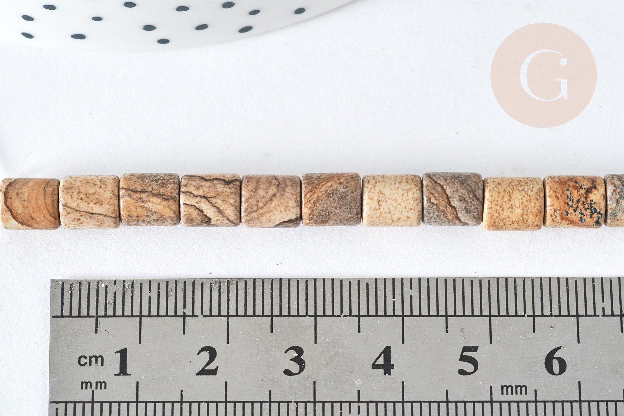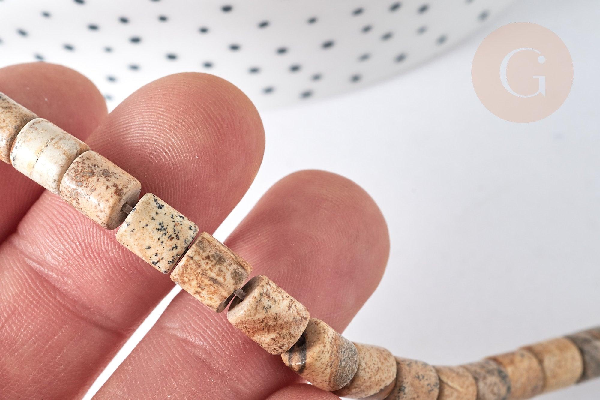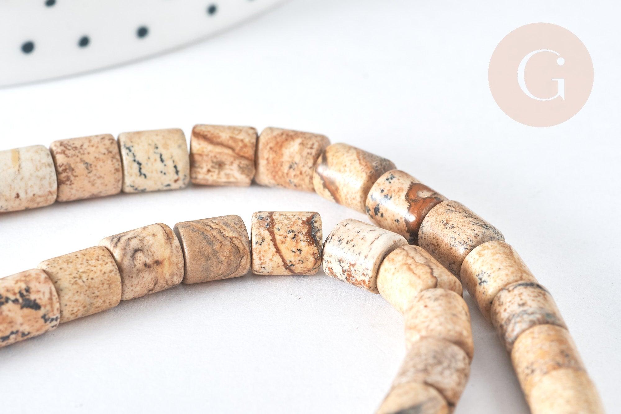 Adopt these round drilled beads . These are fine stones with a rounded rectangular shape and are landscape Jasper . Ideal for all your DIY costume jewelry creations.