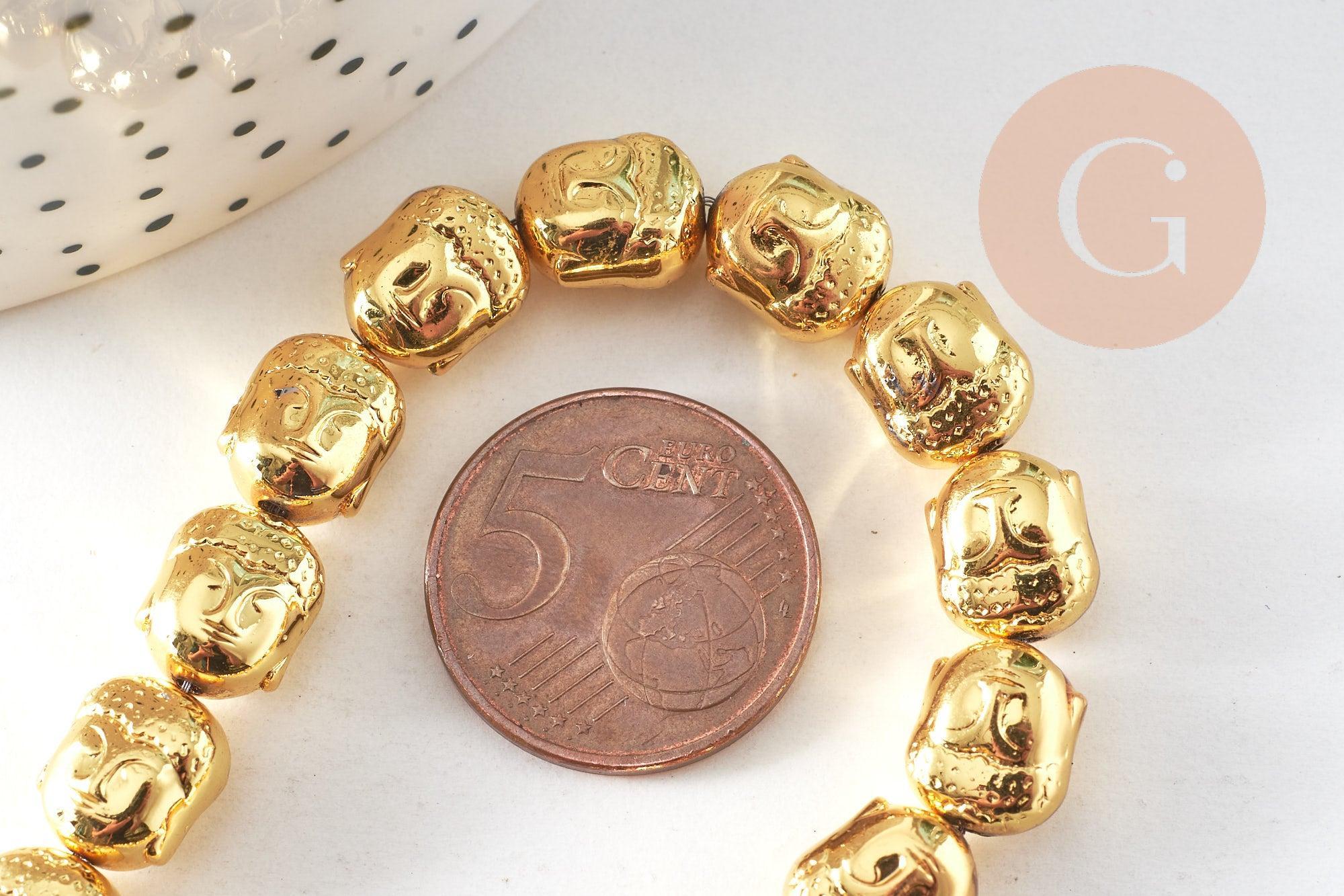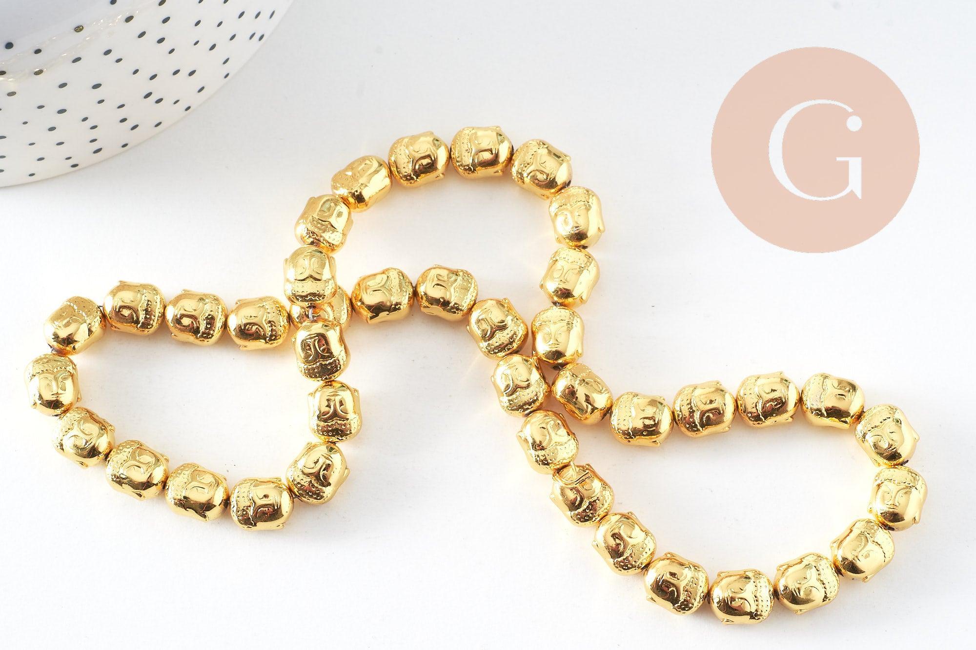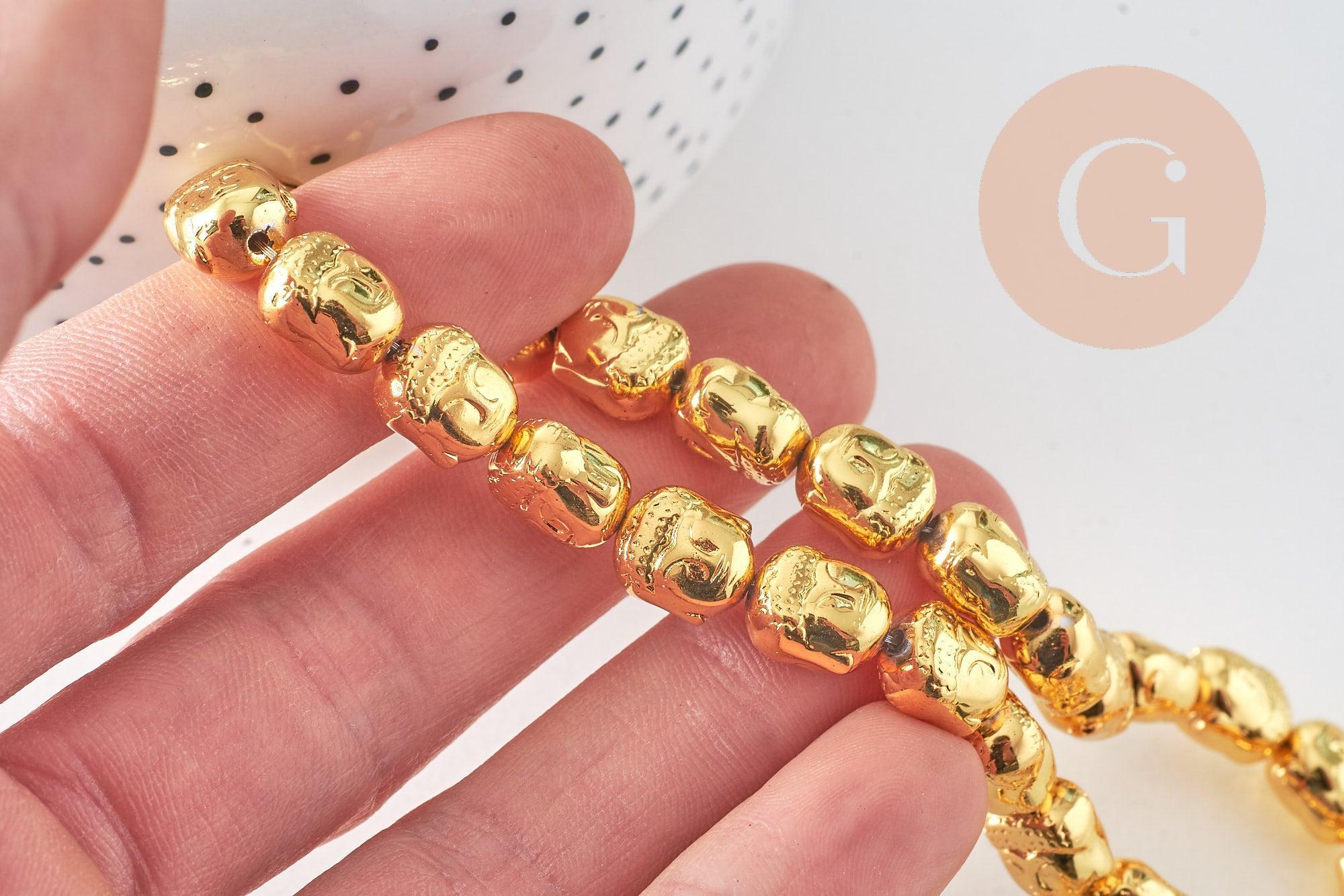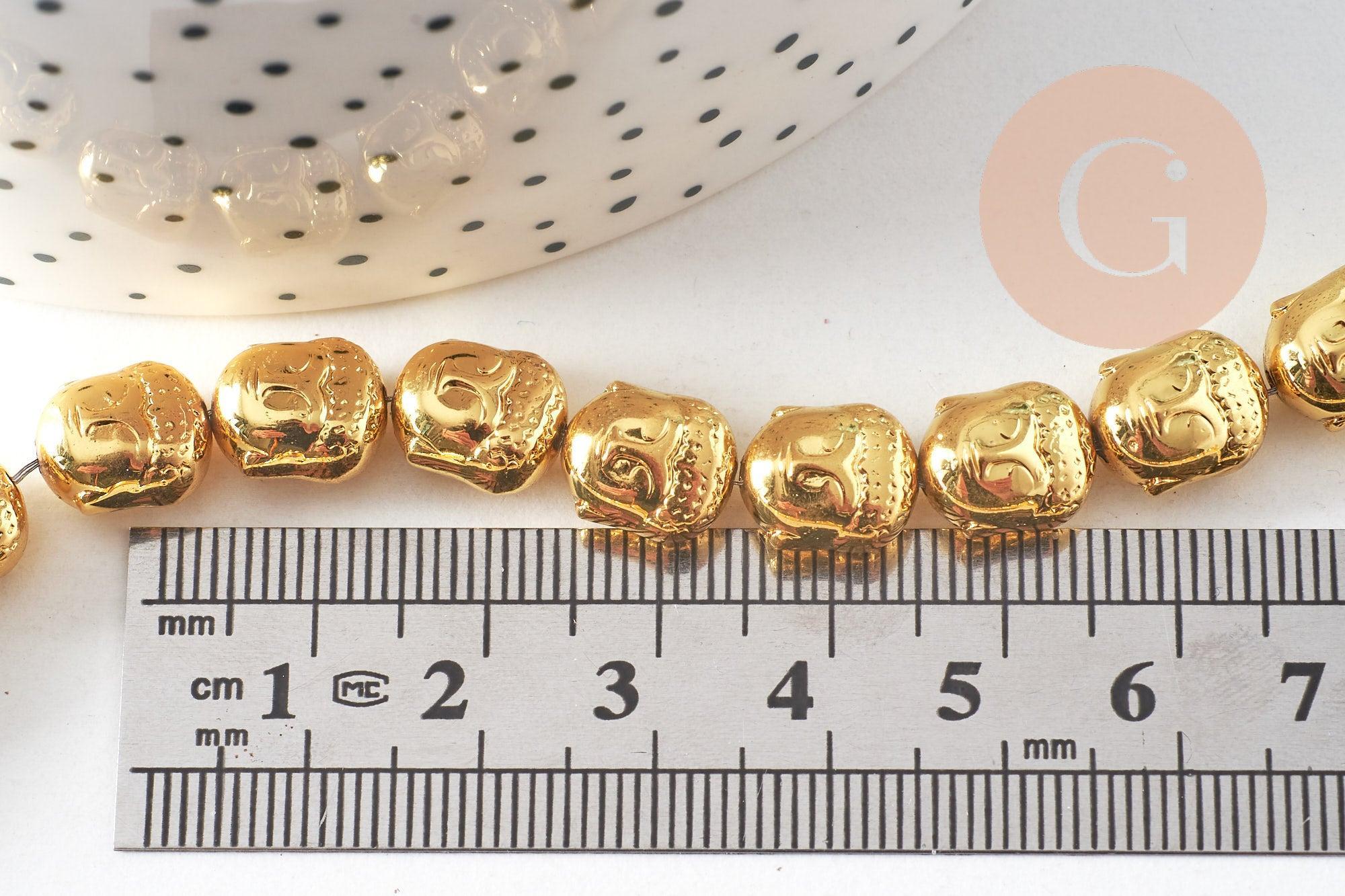 Perle hématite dorée tête de bouddha, perle hématite non magnétique pour pierre,10x9mm, 40 cm le fil de 40 perles, x1 (G4499)