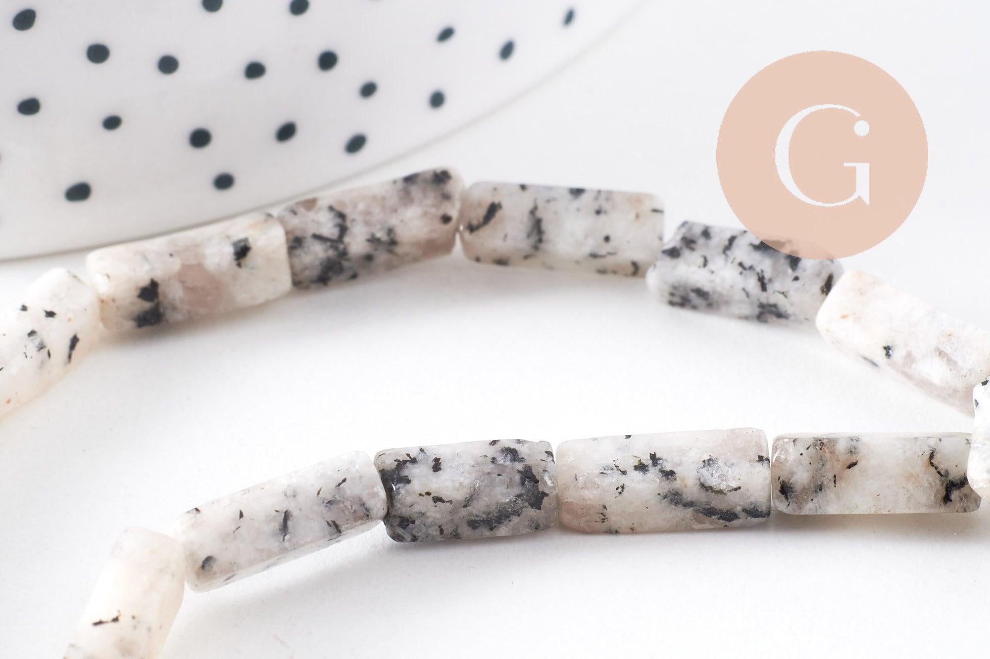 Sesame jasper bead, creative supply, rectangular bead, spotted jasper, natural stone, jasper bead, stone beads, 29, 14mm thread