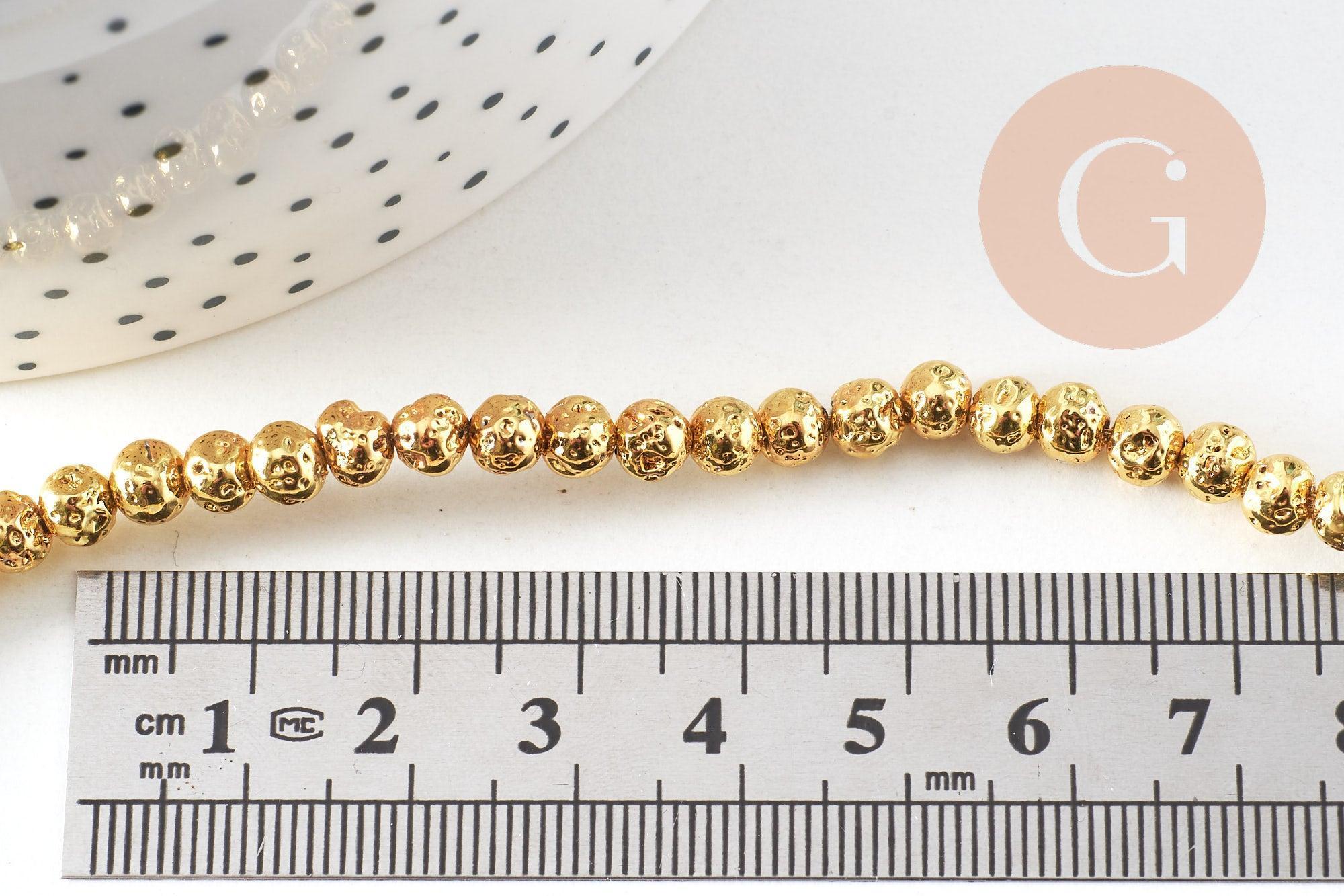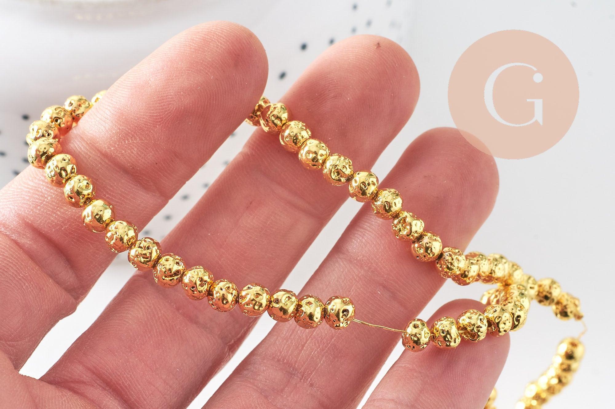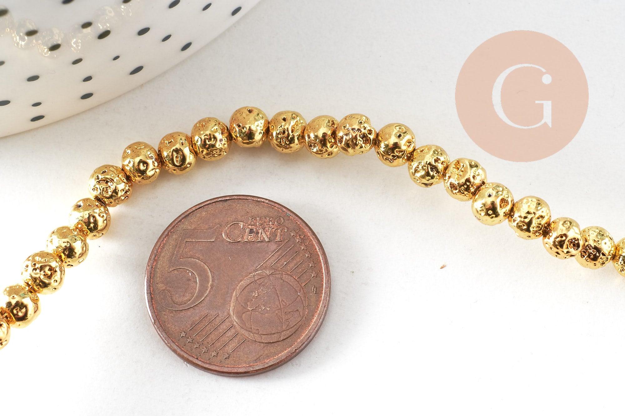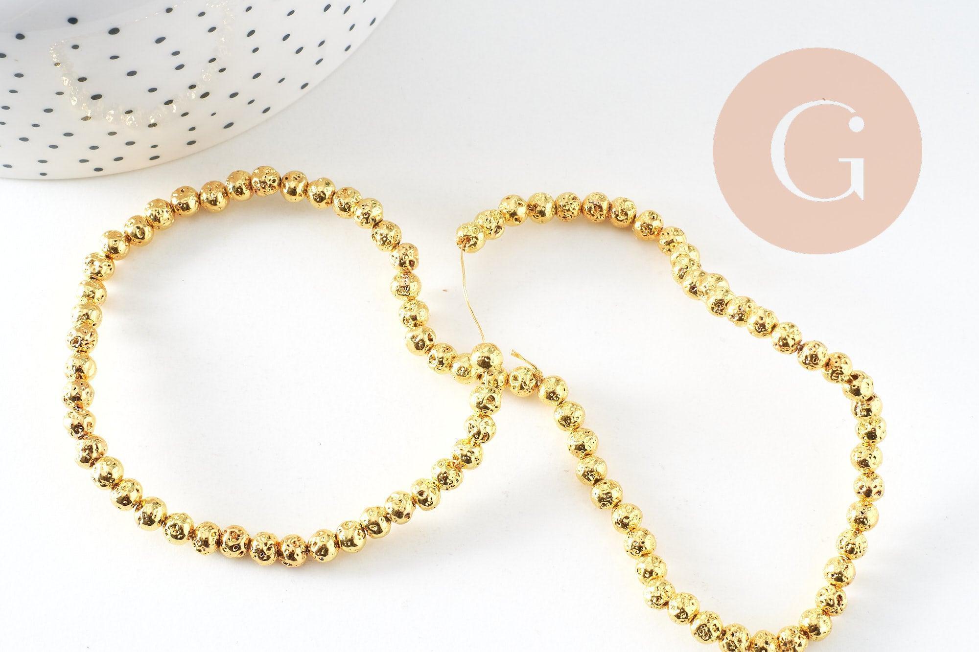 golden lava bead round bead, natural lava, white lava, natural stone, jewelry creation, 38cm wire, 4mm
