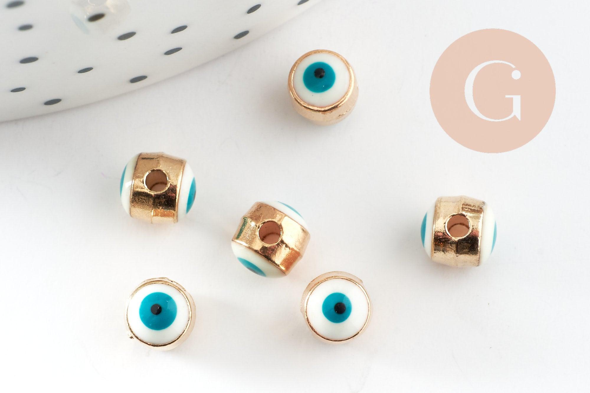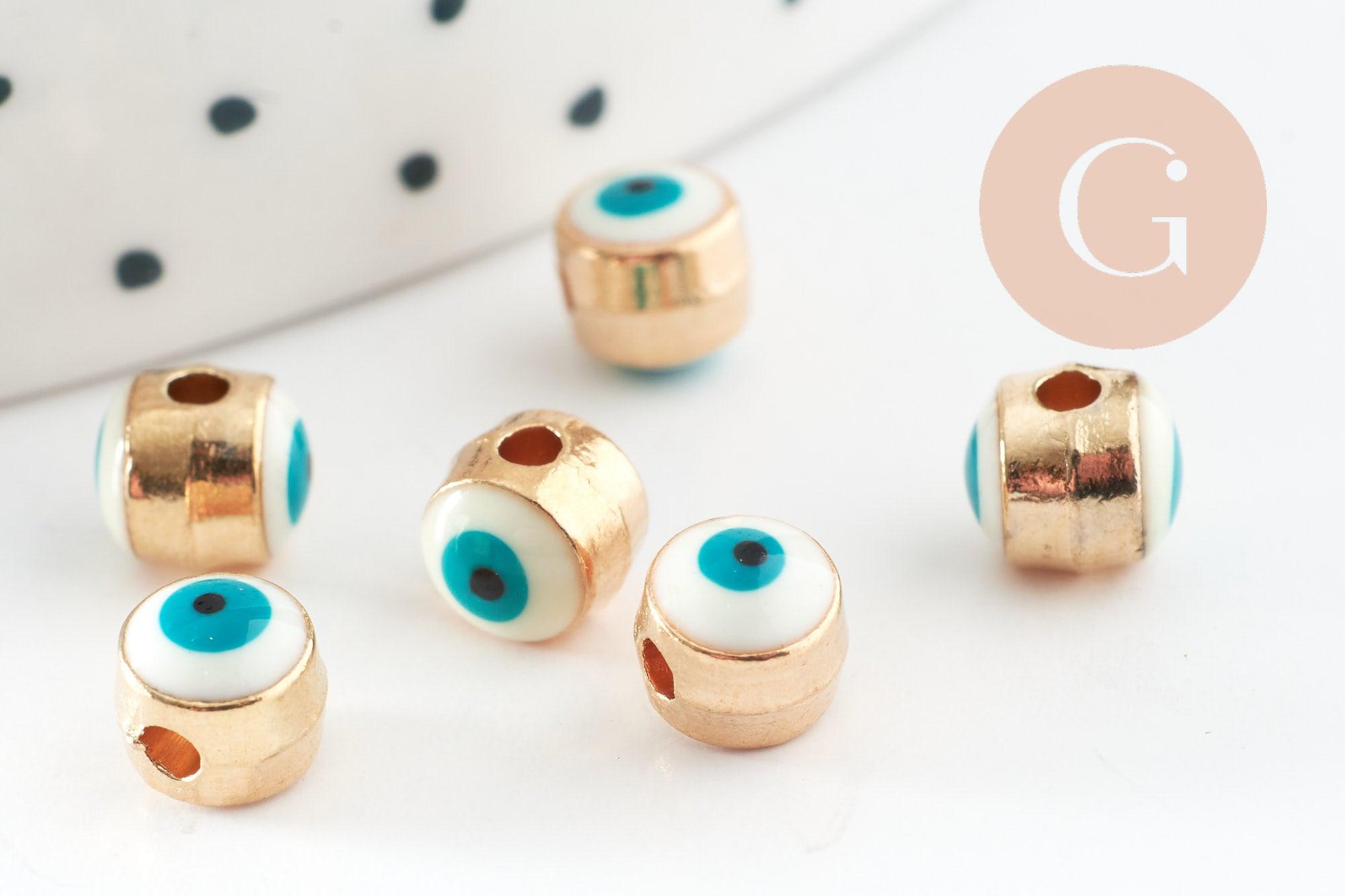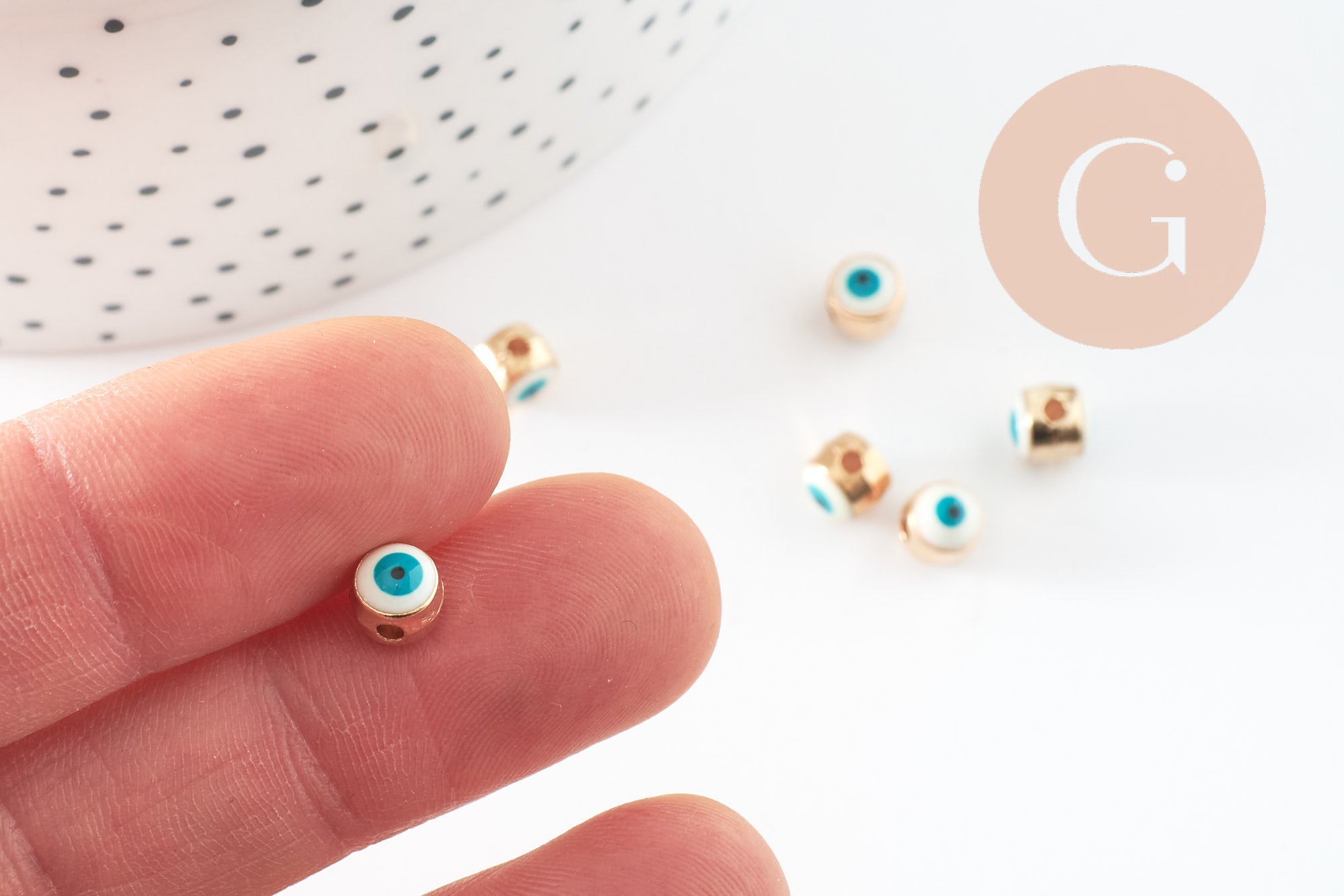 Golden zamac bead, enameled in white, with "the evil eye" motif.