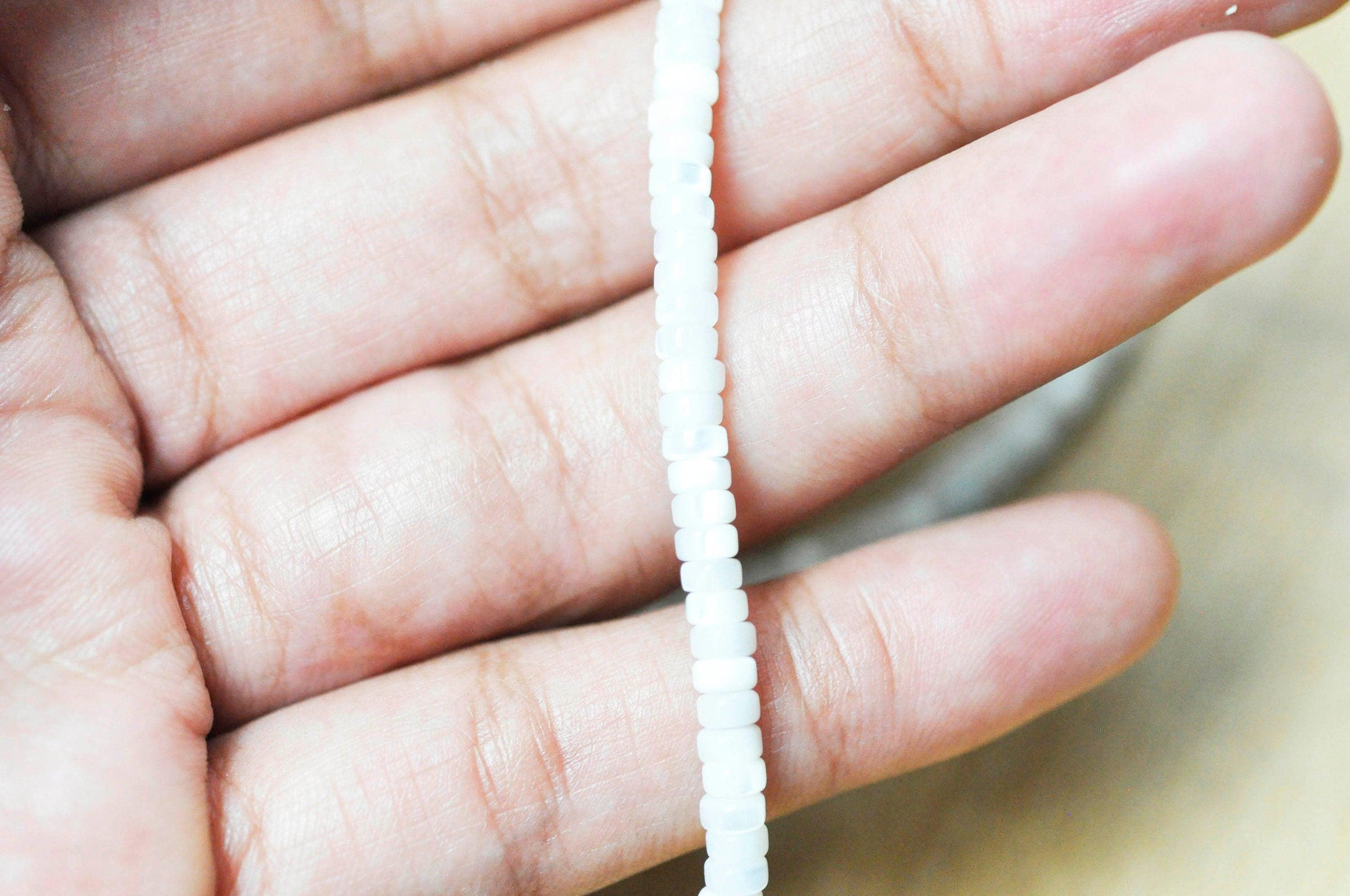 natural white mother-of-pearl heishi pearl, ivory shell tube, shell pearl, jewelry creation, 2x4mm, thread of 185 pearls 1 full strand of natural white mother-of-pearl heishi rondelle beads (approx. 38cm) A lovely product for making jewelry in the very fashionable shell...
