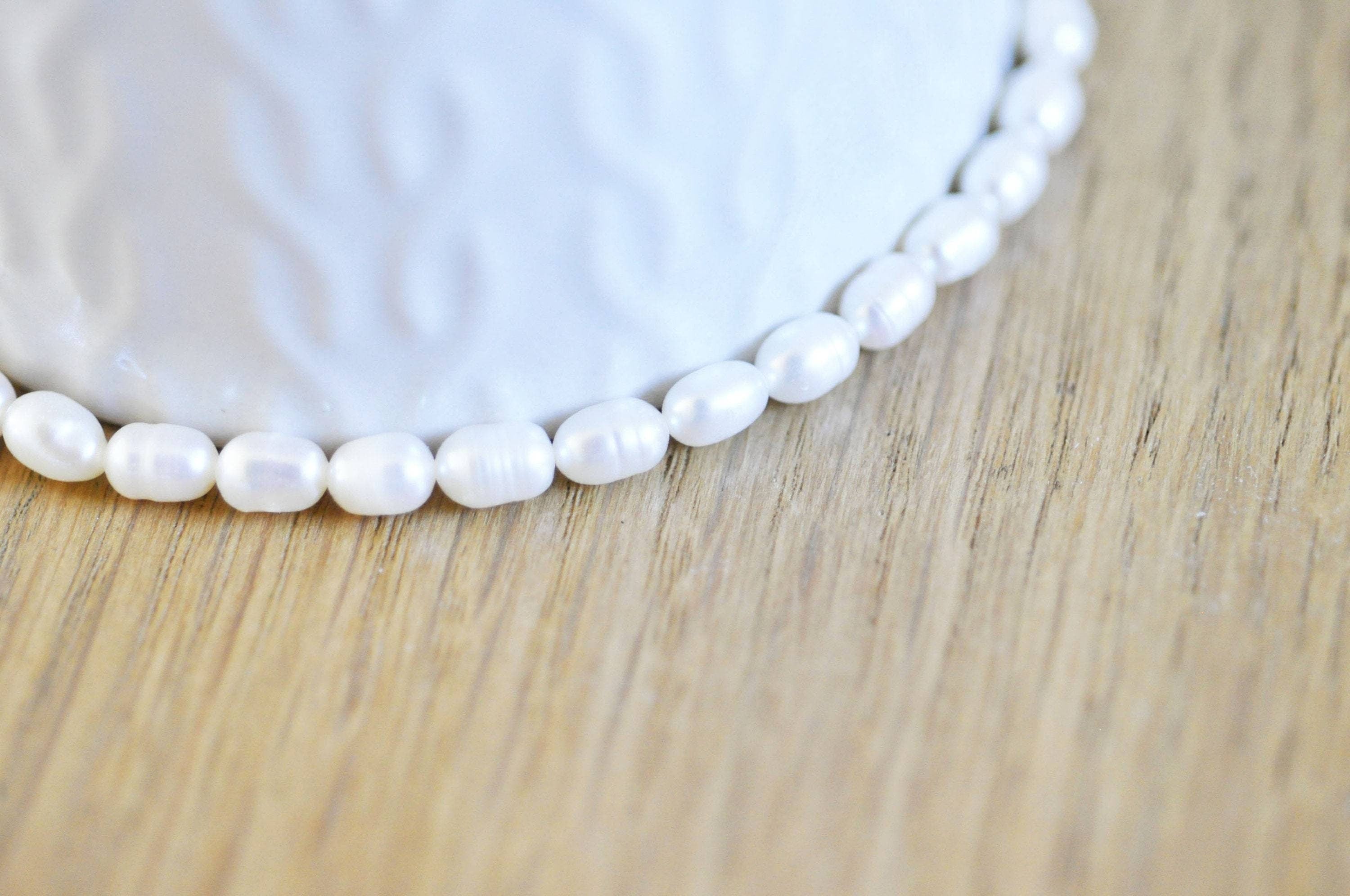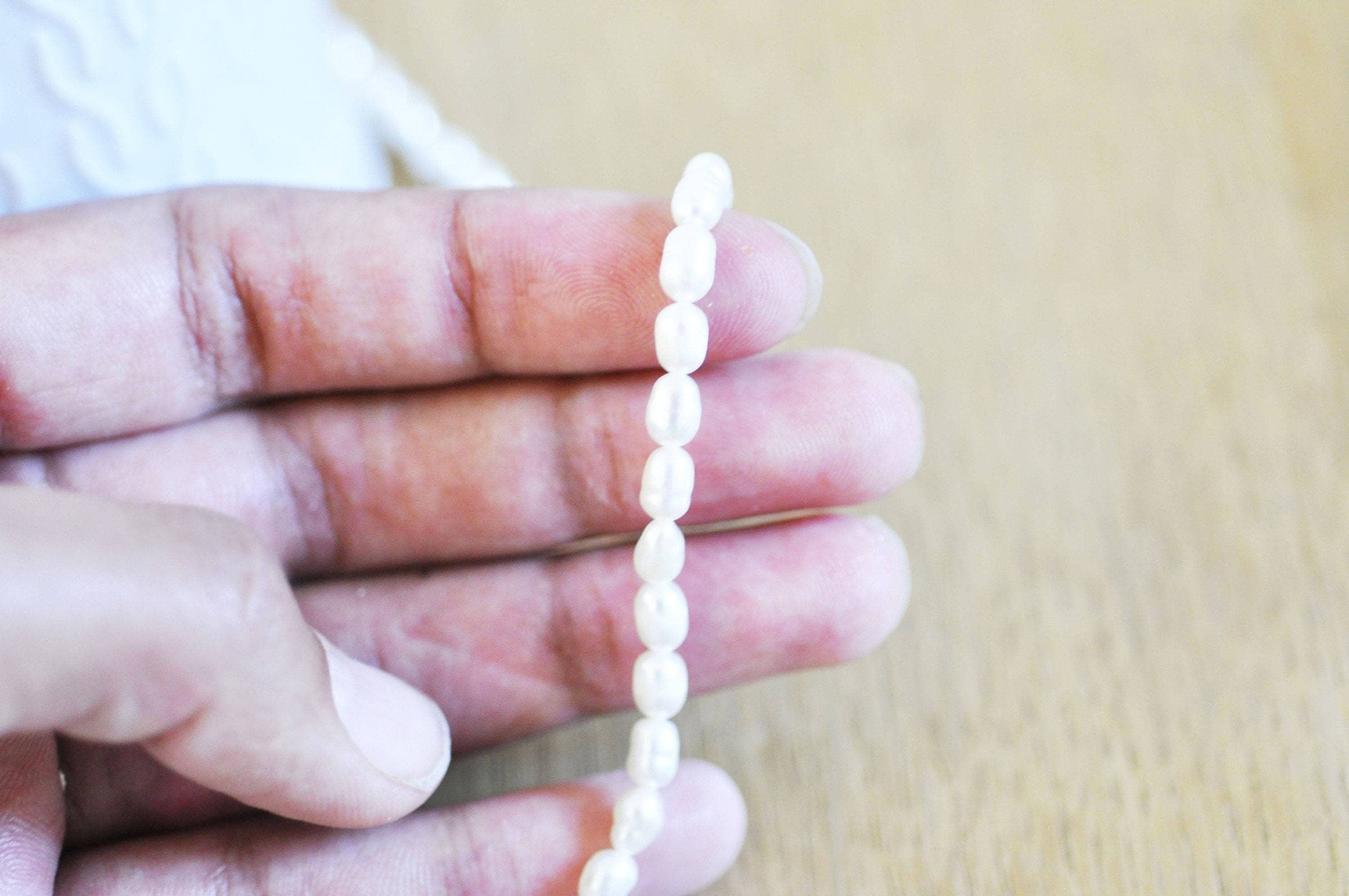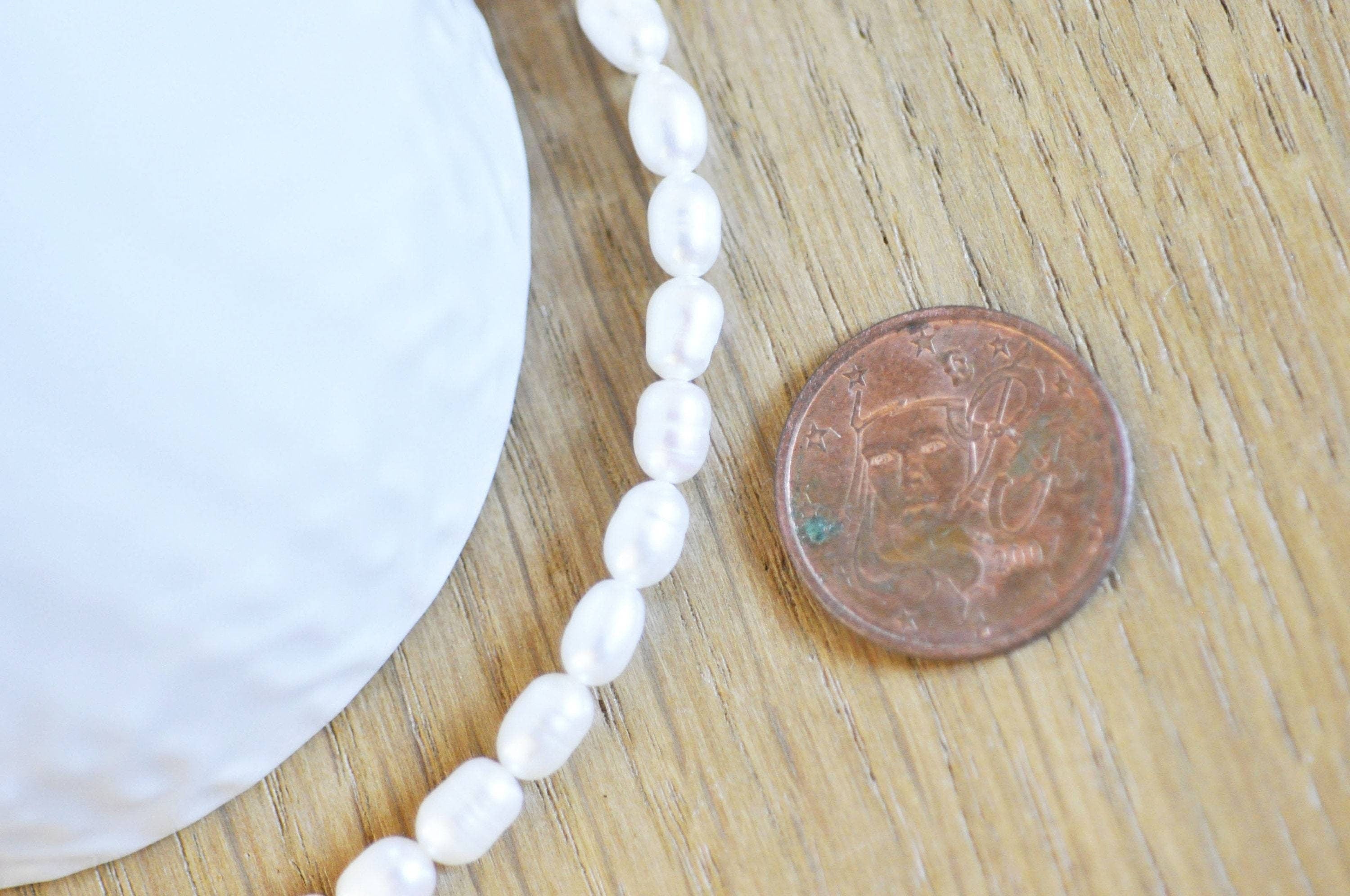 white natural pearl, grade A, potato pearl, pierced pearl, cultured pearl, jewelry creation, freshwater pearl, 4-5mm Natural freshwater pearls of very good quality, sold by strand of approximately 45-50 pearls Potato shape. Dimensions: Length: 4-5mm Hole: 0.8mm Other sea-themed beads...