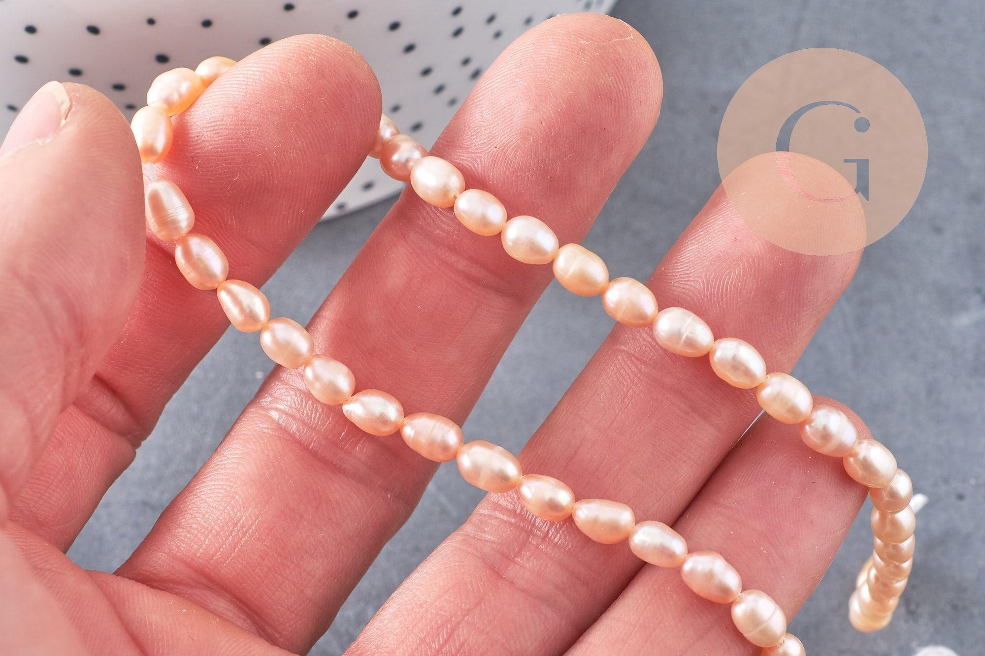 natural peach pearl, oval pearl, pierced pearl, cultured pearl, jewelry creation, freshwater pearl, 4-5mm, wire