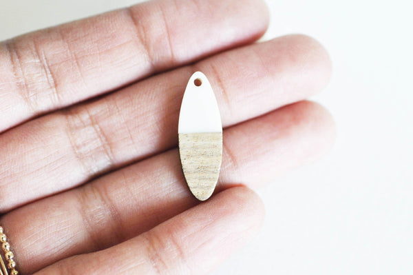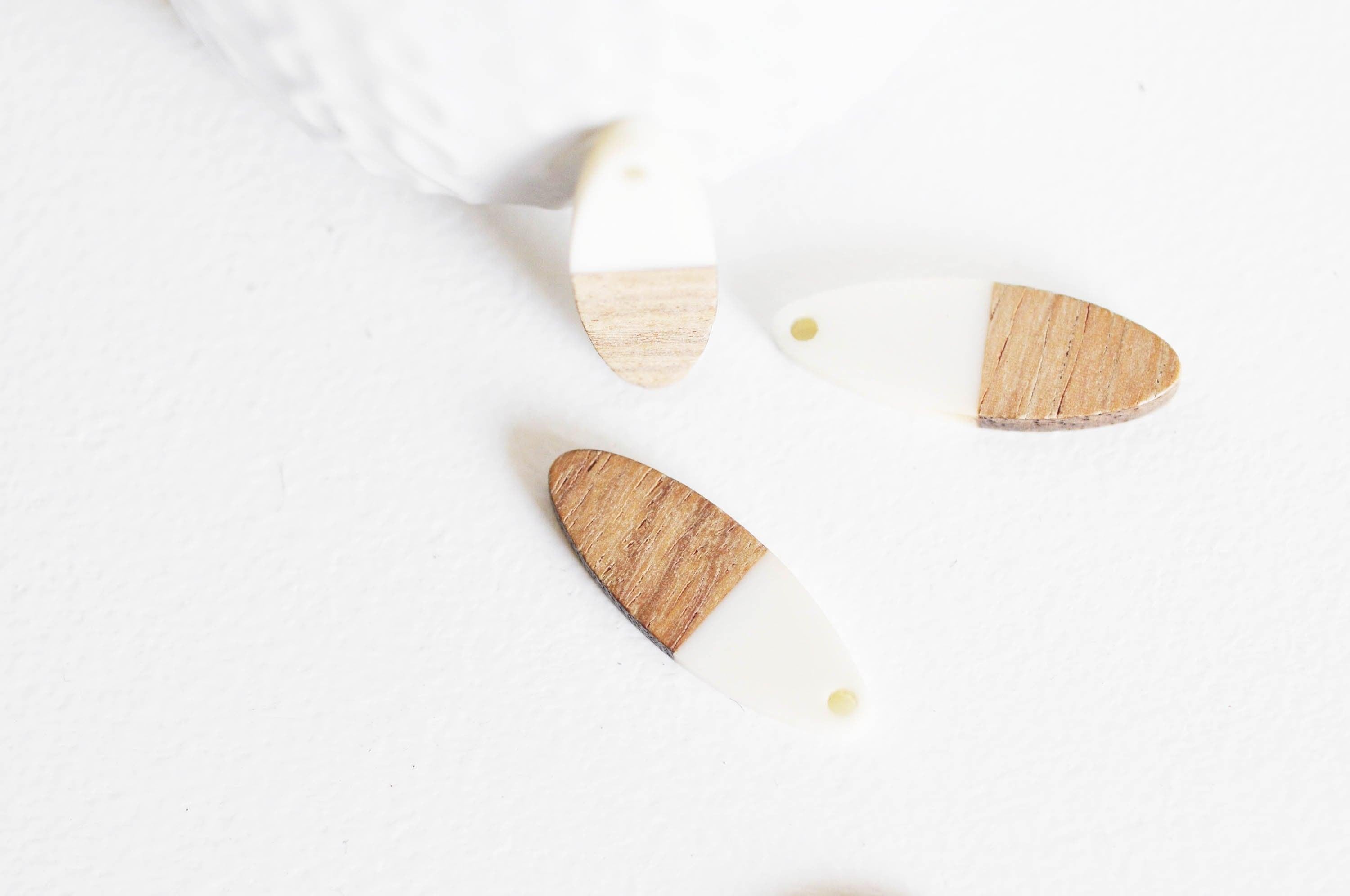 Oval pendants in wood and colored resin which can make very pretty pendants or complete earrings in a geometric style.