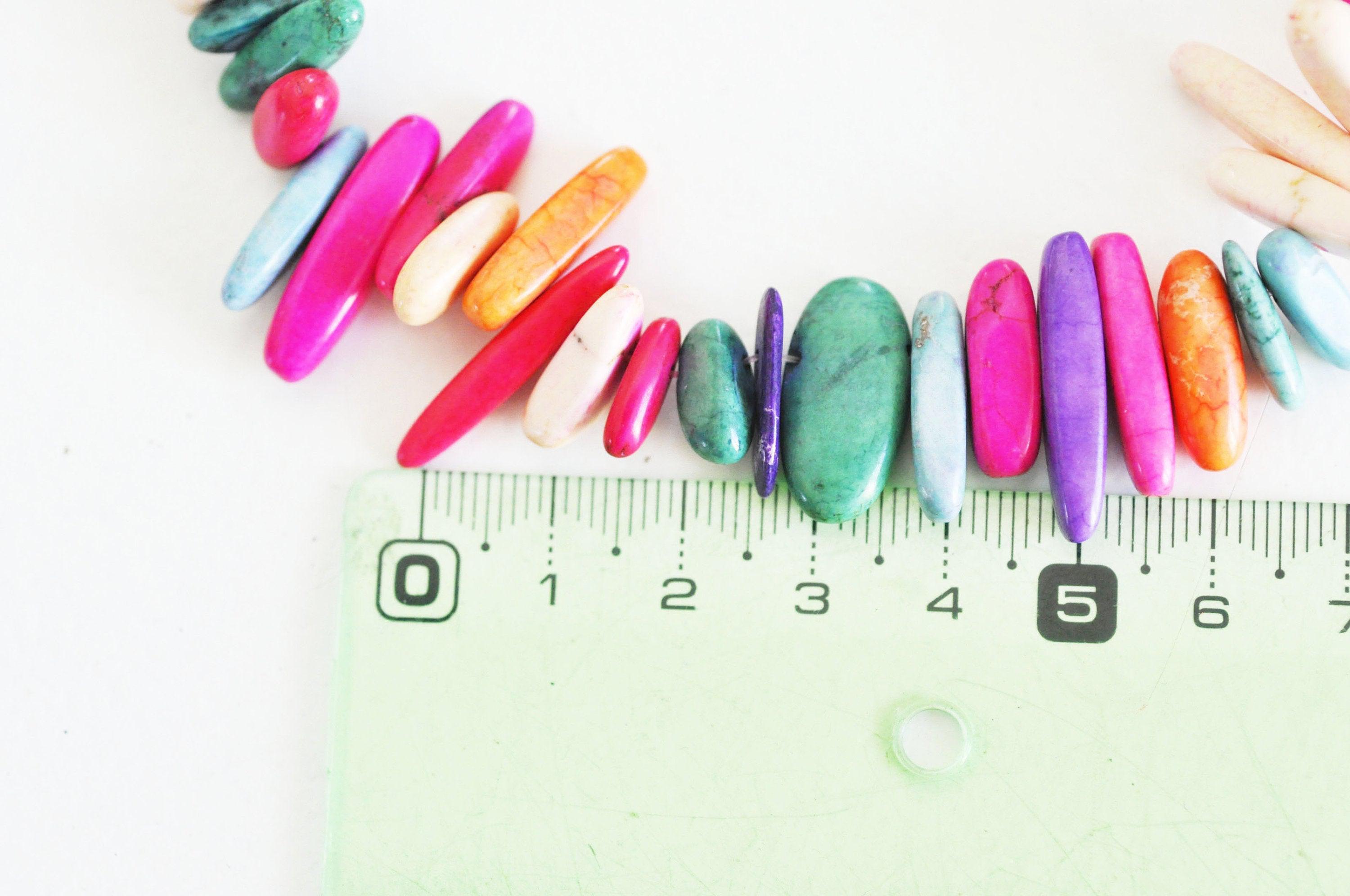 oval bead multicolored howlite chips, natural howlite stone, stone jewelry creation, stone bead, 11-19mm, 40cm wire A string of beads made of long chips in natural howlite dyed in different colors Beads measure: 11-19mm in length 4-8mm wide 4-6mm thick...