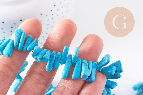 Perle ovale chips howlite turquoise, pierre howlite naturelle, pierre,perle pierre,12-20mm, fil de 39cm x1 (G4068)