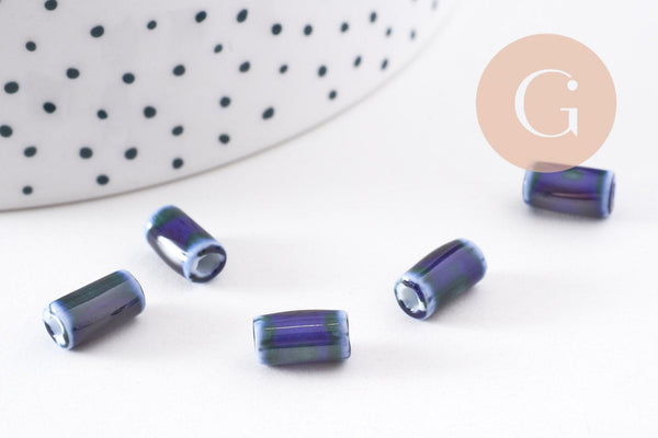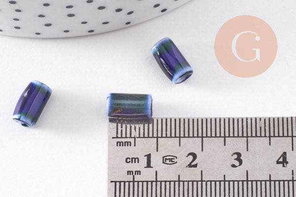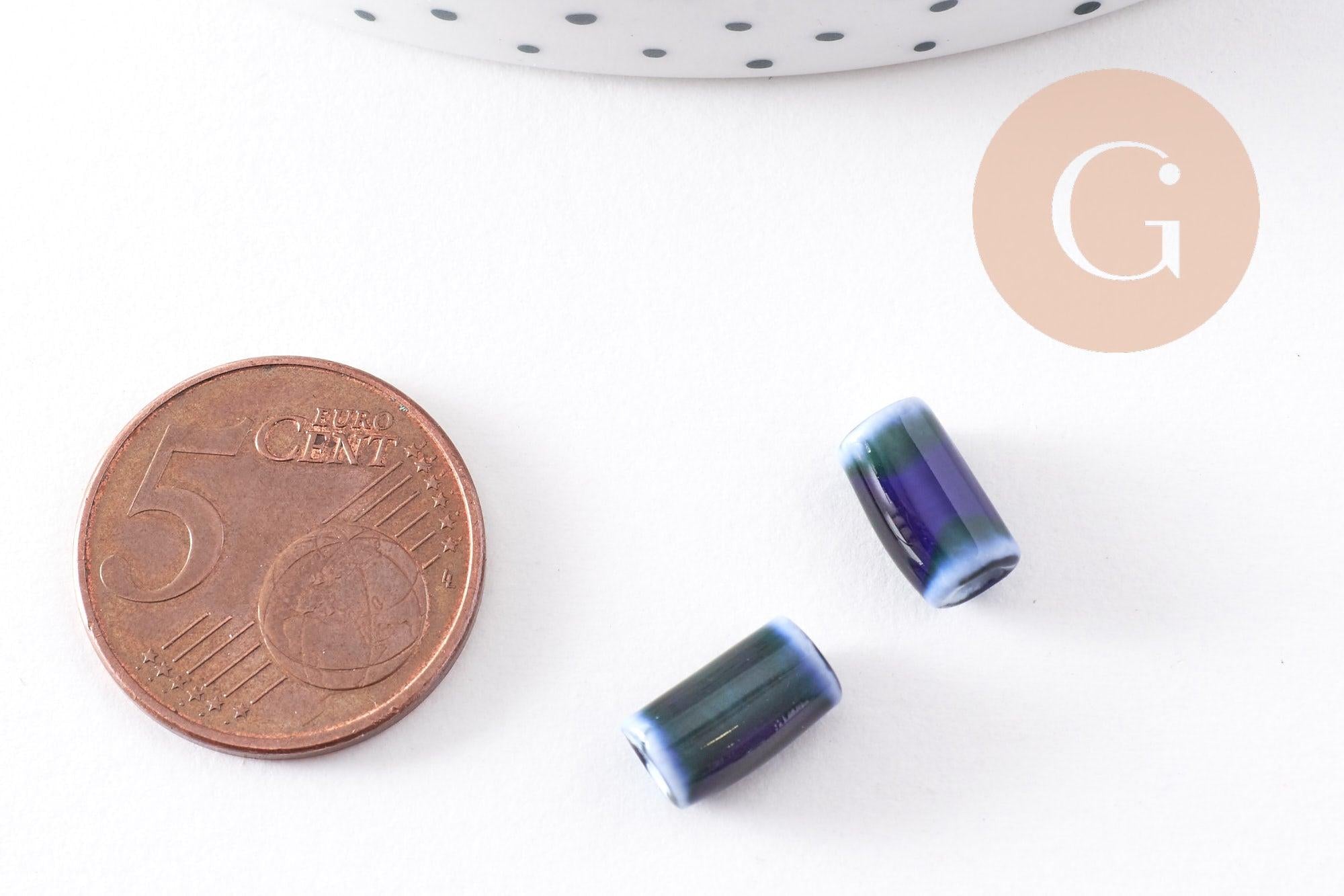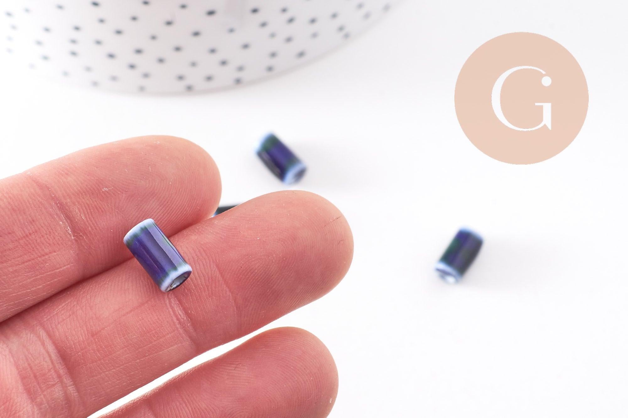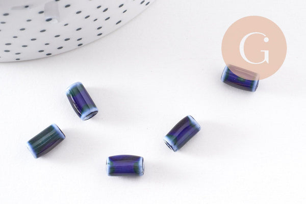 Perle tube porcelaine bleu foncé 10mm, x5 (G5395)