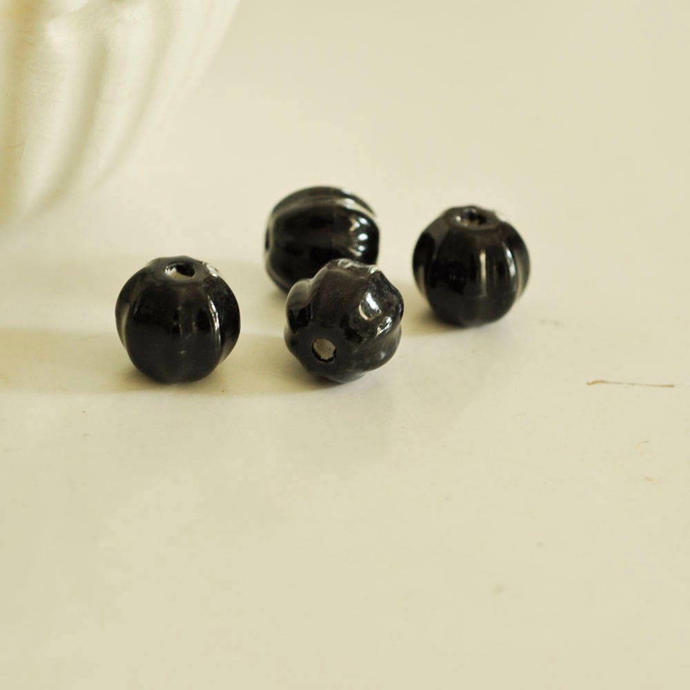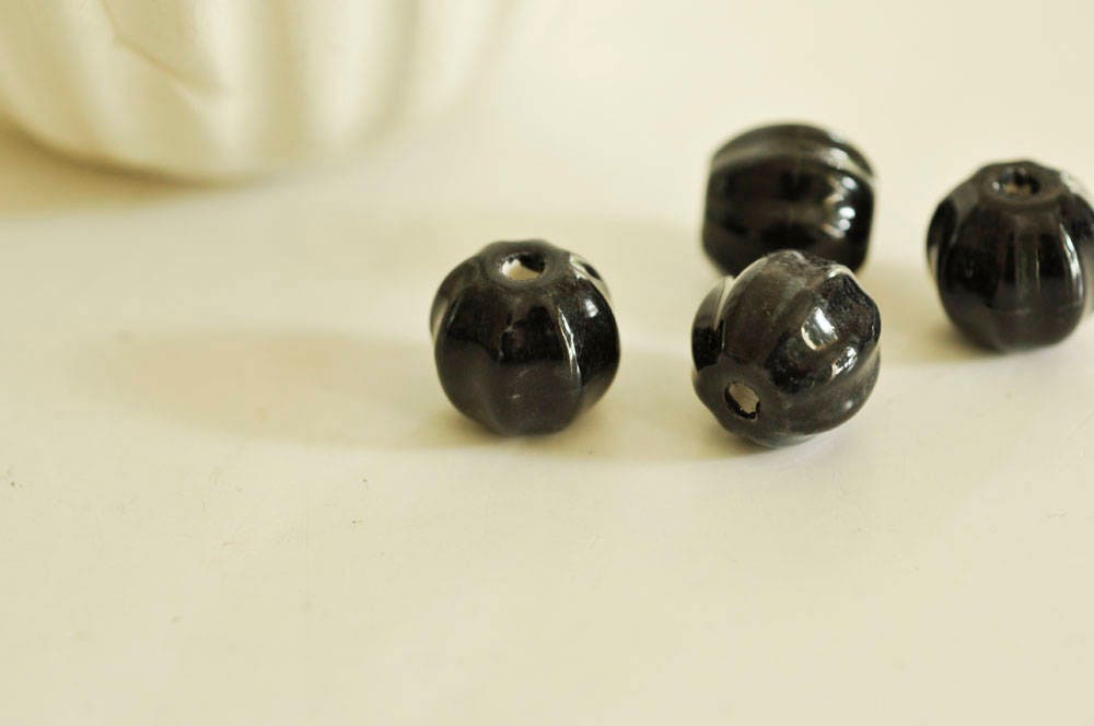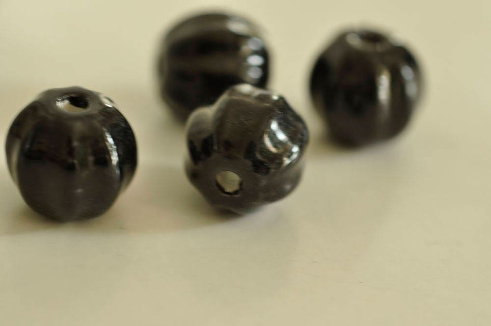 black porcelain pearl, craft supplies, striated pearl, ceramic pearl, jewelry making, black ceramic, Set of 5, 13mm A set of 5 round porcelain beads with black enamel stripes These are beautiful handmade beads. Diameter: 13mm Thickness: 12mm Hole: 2mm Other...