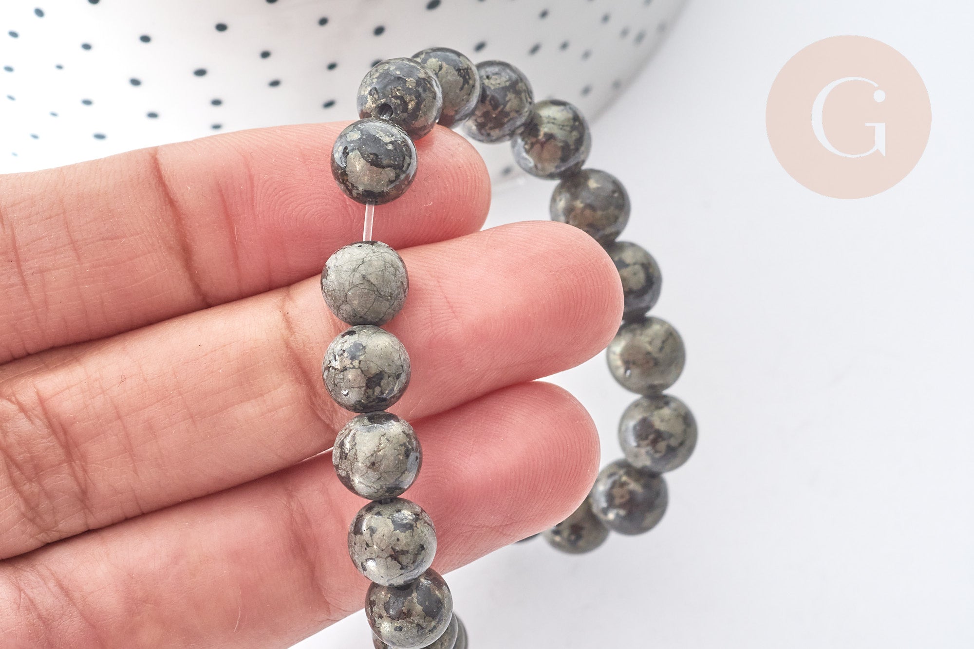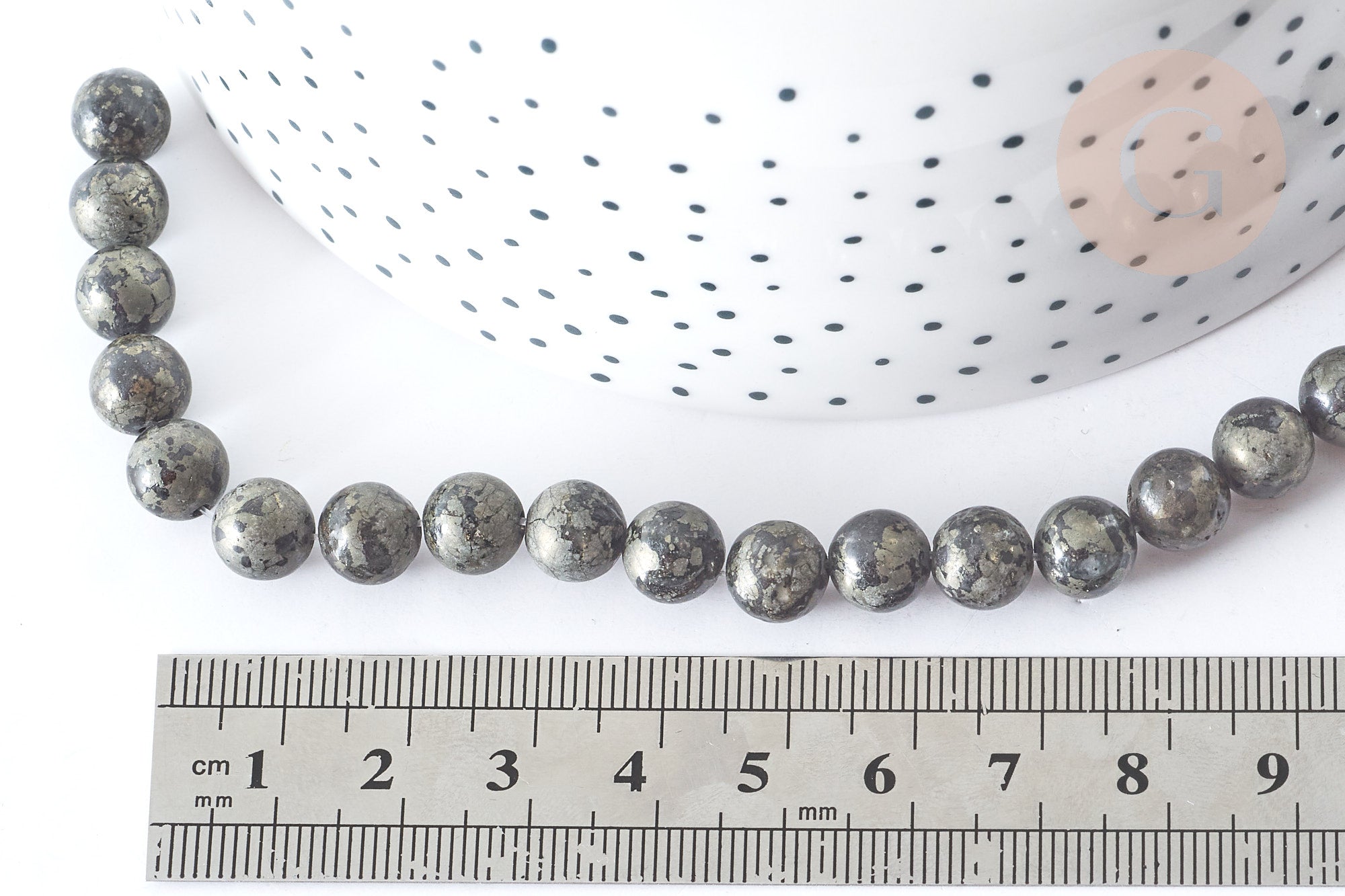 Adopt these round stones in natural gray pyrite which will allow you to create numerous DIY costume jewelry .