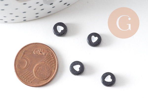 round pearl white heart black plastic, plastic pearl, round letter pearl, jewelry creation, lot of 10 grams