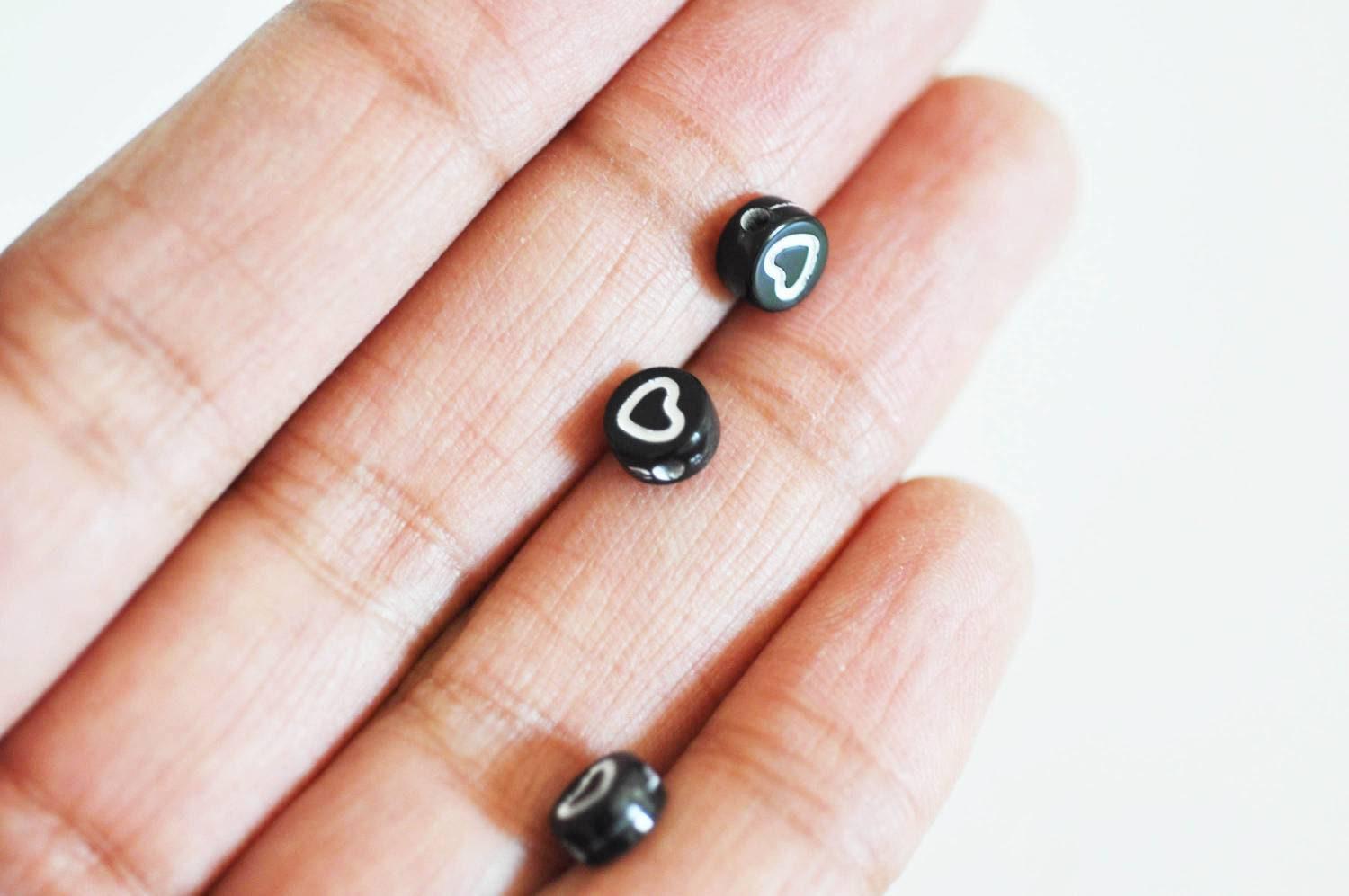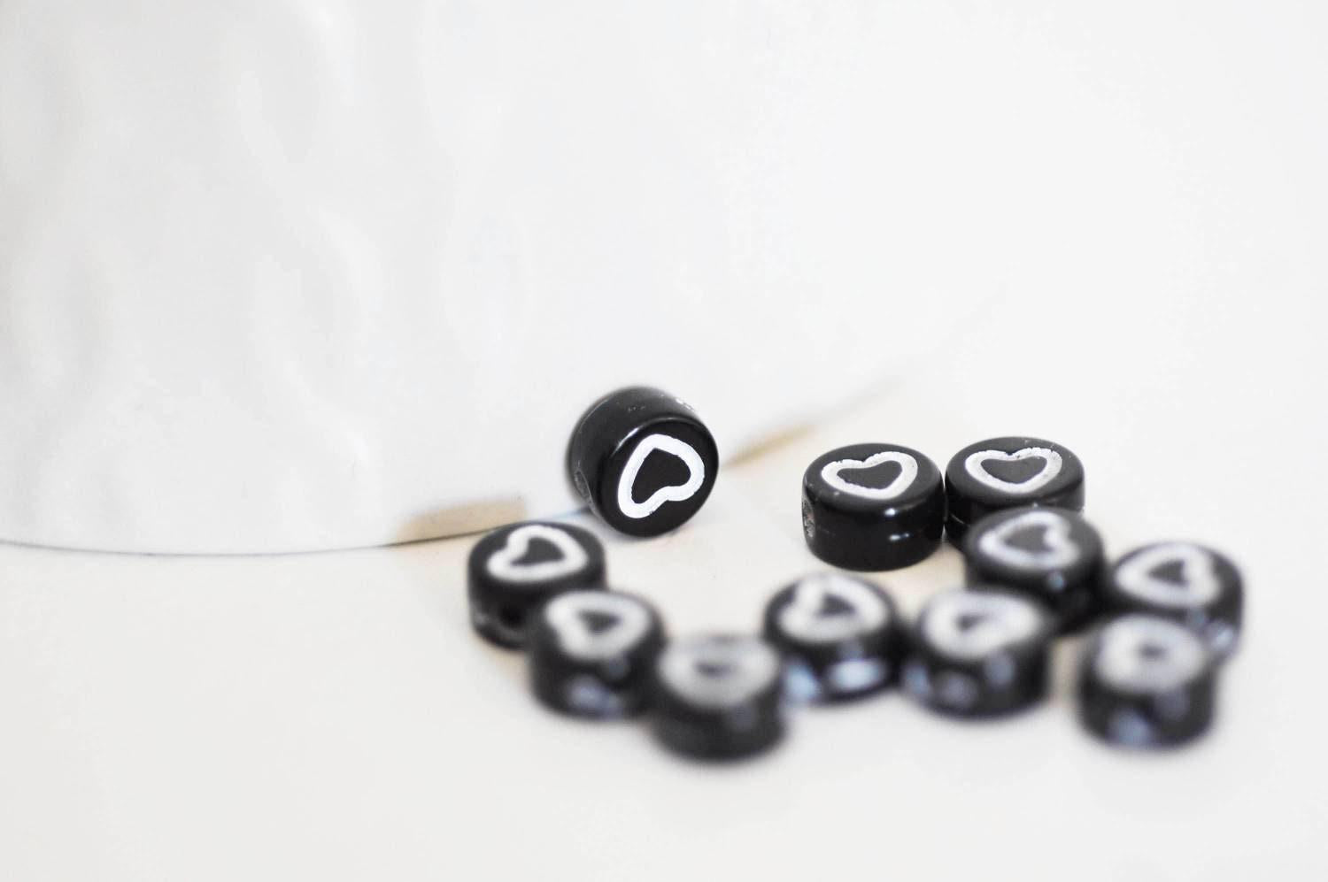 round pearl white heart black plastic, plastic pearl, round letter pearl, jewelry creation, lot of 10 grams